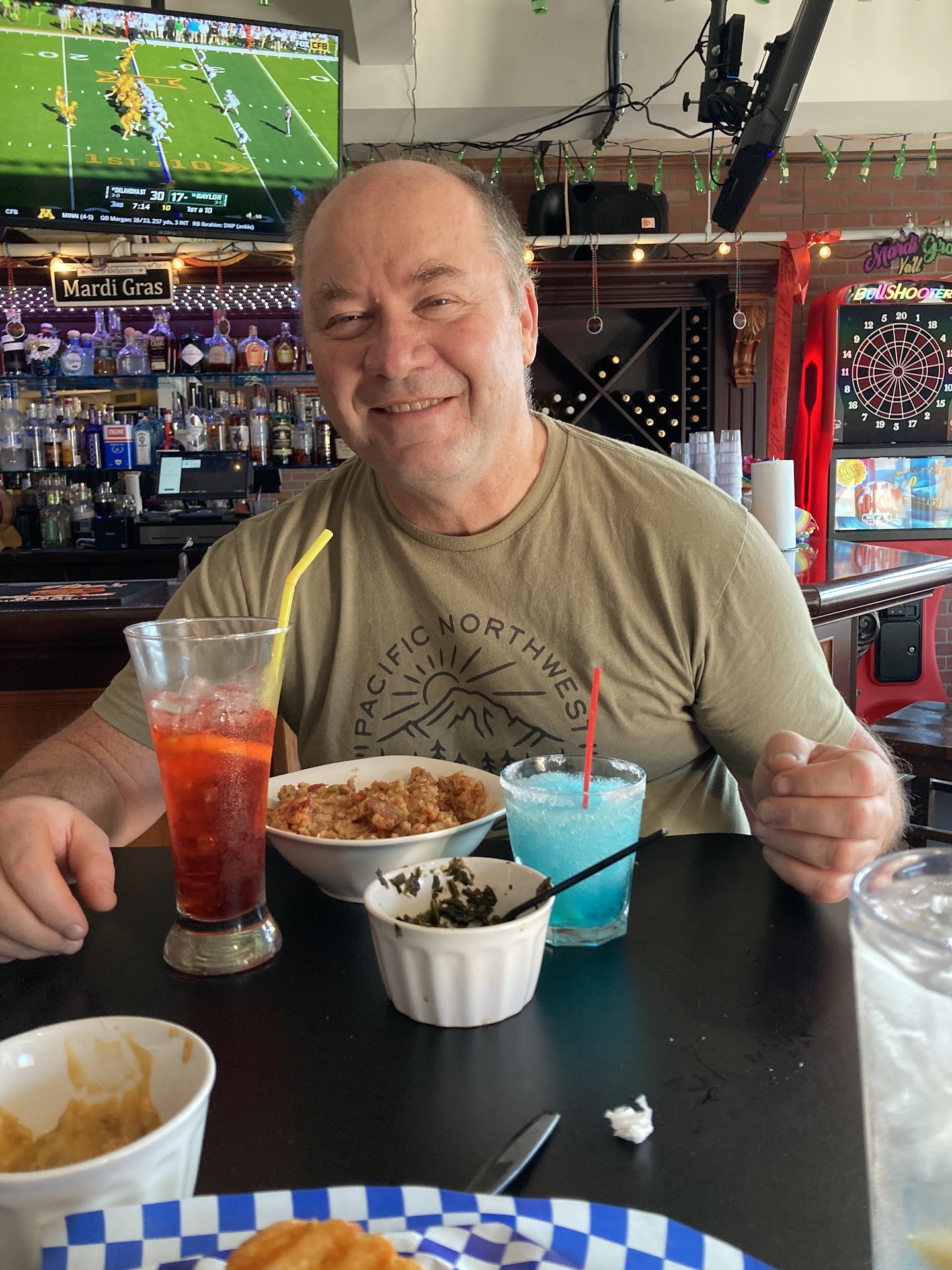 Even though the atmosphere felt like it was 80% humidity on top of the 88° heat, the vibe in there was so chill, I stopped for a drink. I knew my catfish was getting soggier by the second, but I was investigating. The owner was in tonight and did the cooking himself. What a character! Seriously funny guy. Sharp, but busy with trying to sweet talk his joint into a couple of new bartenders—good help is hard to find these and harder to keep. But another local wandered in and sat down at the bar with a few other younger ones outside in the shed out front. It would’ve been my kind of place if it hadn’t been that hot that afternoon.