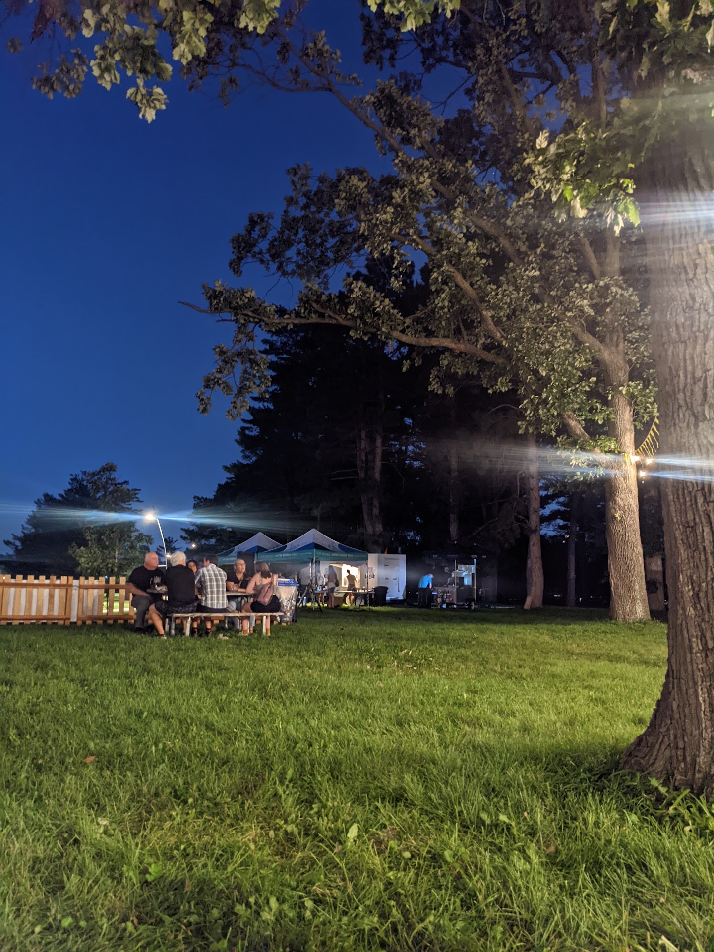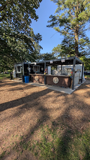 This spot was super cool/chill. It is an outdoor spot. There is no designated seating, so you can sit when and where there is an open chair or table...you can just sit in the grass if you want. If music at the stand it too loud you can sit further away. I did see writting about live music, maybe in other reviews, but there was no live music while I was there. If you find live music not to your liking or the type of live music played not to your liking, remember you don't have to stay. The noise level is consistant of that of a park when there is no live music, and as it should be becuase it is in a park. The scenery is beauitful. I don't drink so I cannot help you there, but the food is amazing. I tried the pretzel with the cheese and the mustard. The pretzel had a perfect crust and nice and soft on the inside. Mustard was full of flavor, and the beer cheese was perfection. Also got the curry wurst with fries. The sausage was not overly greesey and the curry ketchup complemented the sausage flavor perfectly. Fries were hot and crispy. I also was able to try the pork schnitzel bites. There were like little pork nuggets, and so tender. Nothing but good things to say about this place. Service was great and wait time was maybe 5min. Food was made to order, fresh and hot. If you don't try this place, you are truly...