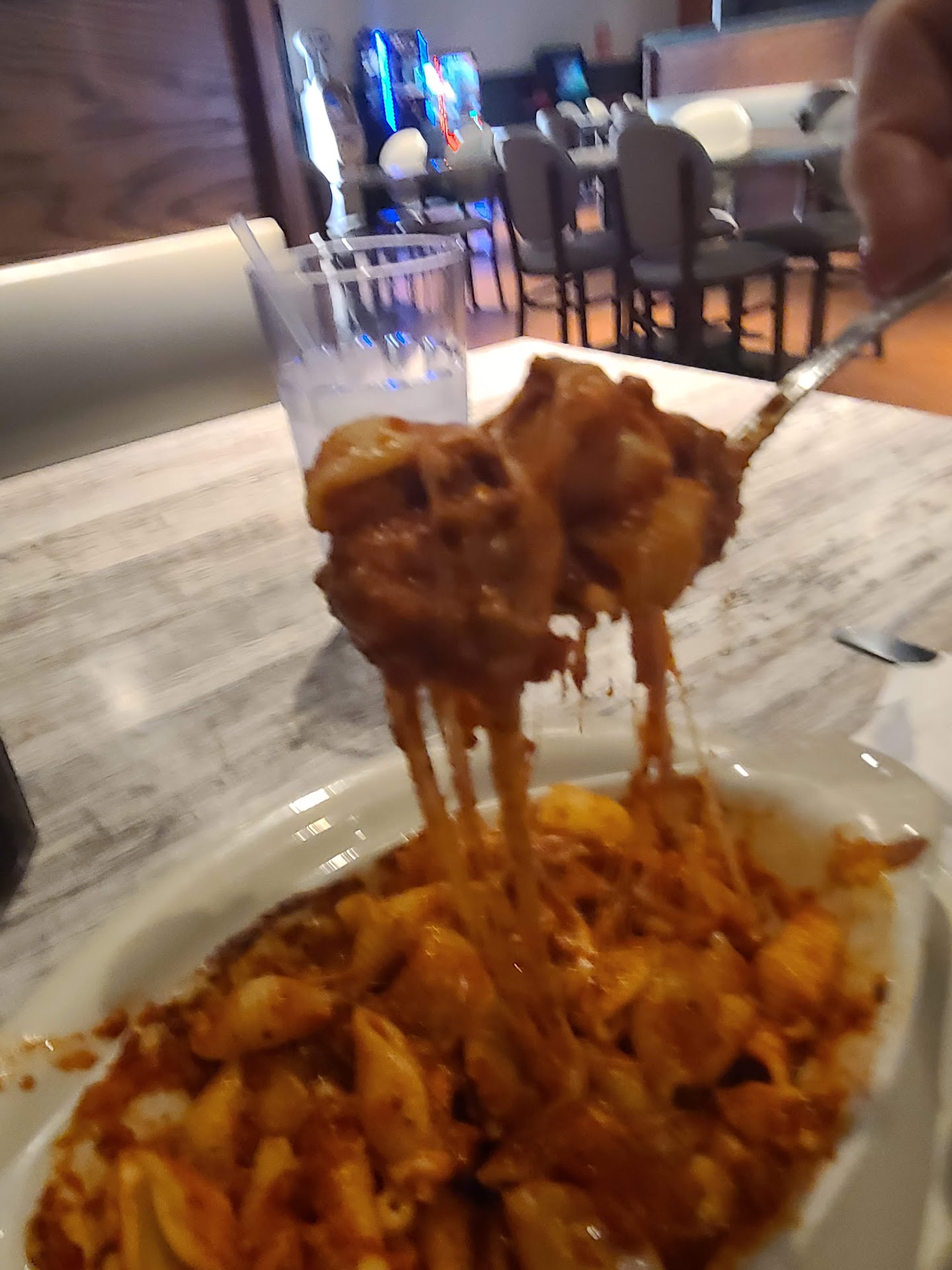 Atmosphere: It's fine. They recently remodeled and it's pretty nice. There is a bar side to watch sports and have a beer or three (including gluten free and cider options), and there is a regular family side to the right. The place is clean and well kept. Only complaint is how damn cold they keep the AC set to in the summer.