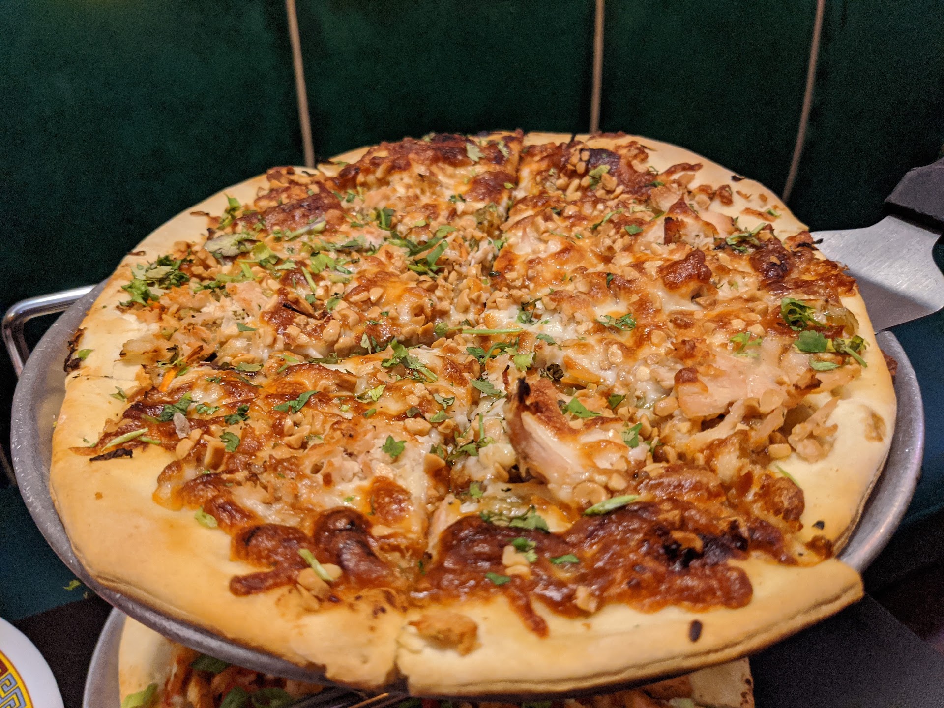 Read moreThe pizza was excellent. I've been hearing about Fong's for a while so we decided to give it a shot. It's definitely different from any other pizza you've had. The crust is not your normal pizza crust. I believe it is made from the same dough used to make the fried wonton crisps you get at some Asian restaurants. It's very good - and crispy. We got two pizzas. A Kung Pau Chicken pizza and a Thai Chicken pizza. Both we fantastic and captured the essence of the dish in the form of a pizza. The only detractor, and it was a significant one, from the experience was the service. We asked a couple of questions about items on the menu but the waitress had never tried those dishes, so she said she had no idea. We ordered an appetizer that never arrived. Fortunately, we were not charged for it either, but it was never even mentioned. Fong's uses small wire racks to hold the pizza pans at the table. Unfortunately, our waitress placed ours too close to the edge of the table. Not realizing how unstable they were, our took a tumble of the table shortly after she dropped the pizza off. It made a loud clattering sound as the pizza rack and pan hit the floor but nobody came to our aid. The pizza actually landed upside-down on the bench seat next to us. Normally, I may have eaten it. But being in the middle of a coronavirus pandemic with your food having just fallen onto a surface of questionable cleanliness, I had to pass. When the waitress eventually arrived (about 10 minutes later) and saw the mess, we explained what had happened. She did not express any remorse and just laughed at the situation. I was happy they were making an effort to be open during the pandemic and I know things are extremely tough on the restaurant industry right now, so I decided not to make a big deal about it and just forgo the other half of my pizza. Hopefully Fong's will be able to address their training shortfall to save future guests from a...
