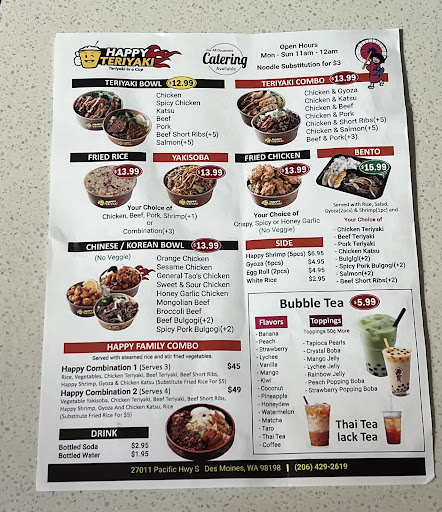 Maaan! My husband and I were REALLY skeptical about ordering due to the reviews! Eeek! 👀😫😅😁 Thank goodness we prayed together and stood in agreement that EVERYTHING was going to be good because, honey, it was fiiiire!! And for just $10.99??? Yeeeah, GOOD LUCK, MATCHING QUALITY AND QUANTITY BECAUSE YOU WON'T FIND IT! HONESTLY, WE USED TO GO TO APPLE TERIYAKI ONLY FOR CONVIENCE BECAUSE I TOLD MY HUSBAND, THIS DOESN'T HOLD A CANDLE to the one in Lakewood! Portions are small, and the chicken tastes rancid, but hubby liked the convenience! WELL THANK GOODNESS I NO LONGER HAVE TO "SETTLE" for greatness! Thanks to Happy Teriyaki! It wasn't over sauced like "other places" Yippee! Sorry about the egg rolls, but those too were huge and fire! I HIGHLY recommend you give it a try & get your money's...