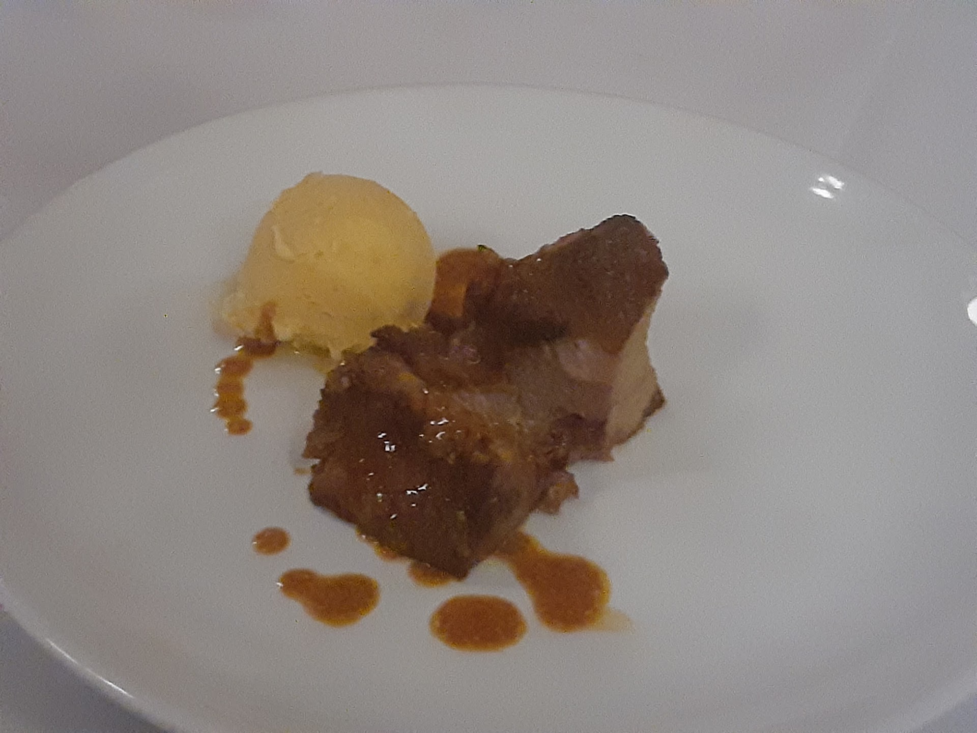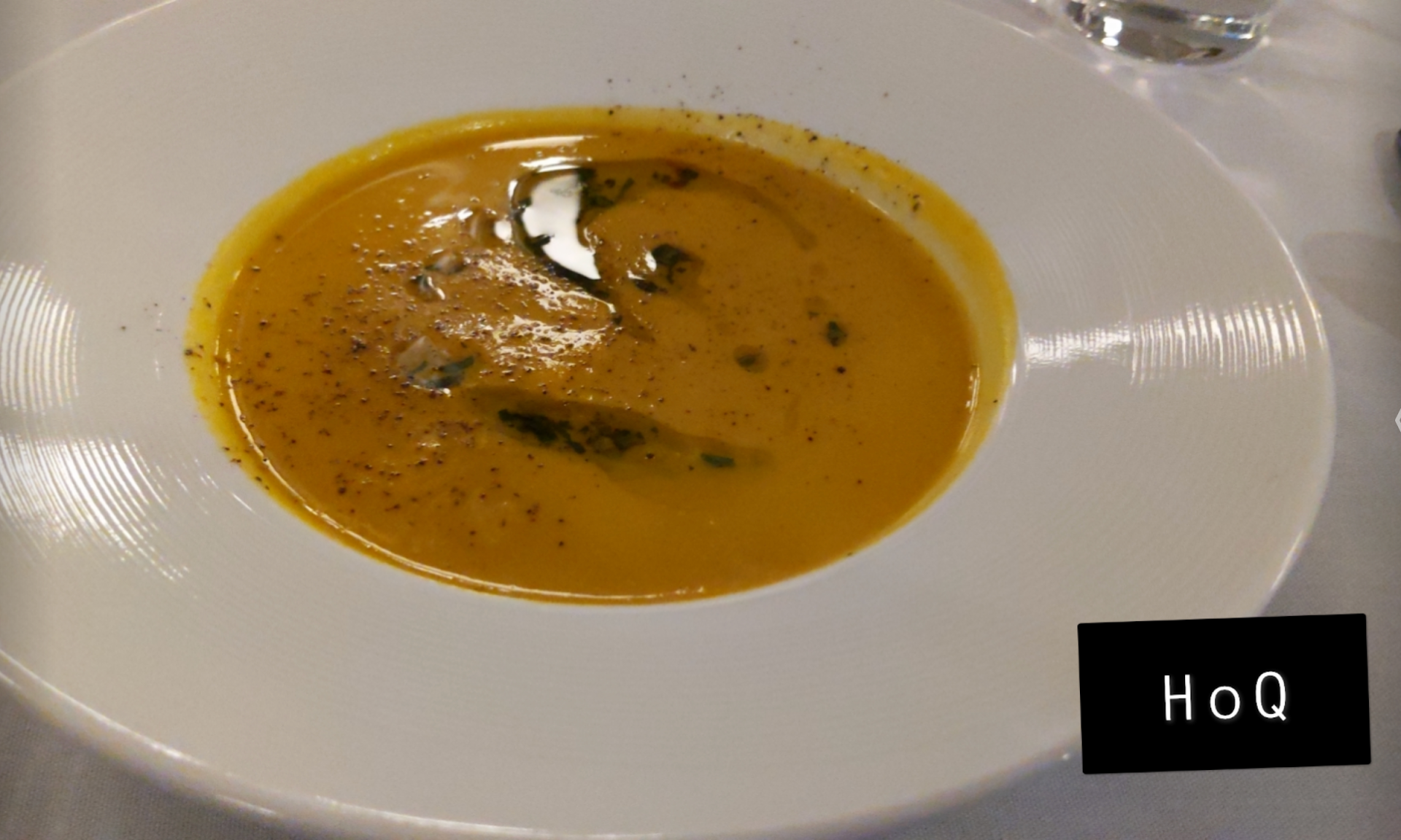 We tried a 3-course menu that was offered last evening, which started off with a choice of either salad or soup (we ordered one of each, in order to try both). The salad was a strong lemon vinaigrette with beets & squash, which I thought was quite good. The highlight, however, was the butternut squash bisque. Borderline perfect, couldn't get enough of it.