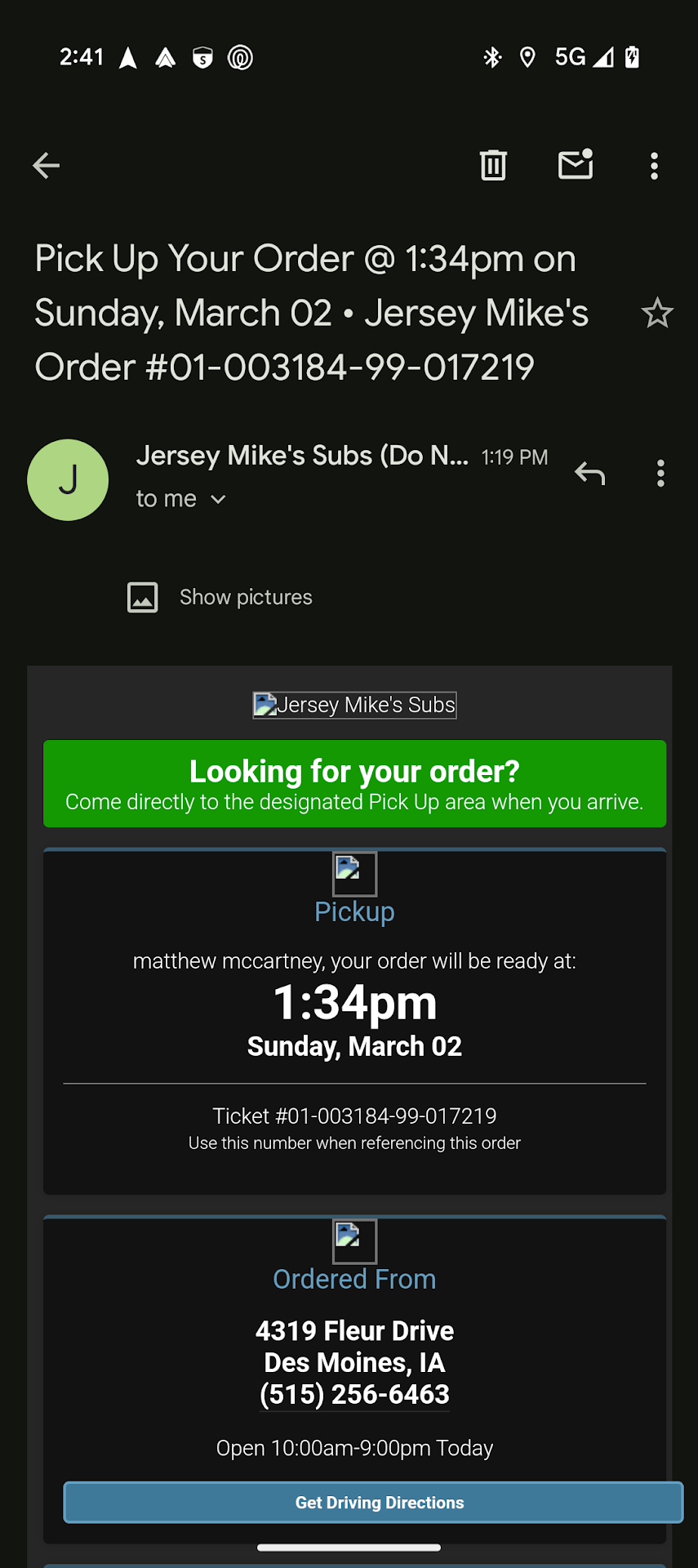 For a fast-casual establishment, timeliness and professionalism are just as important as food quality. Unfortunately, Jersey Mike’s in this case has not met that standard. More consistent training in customer service and time management would make a noticeable difference in the overall experience.