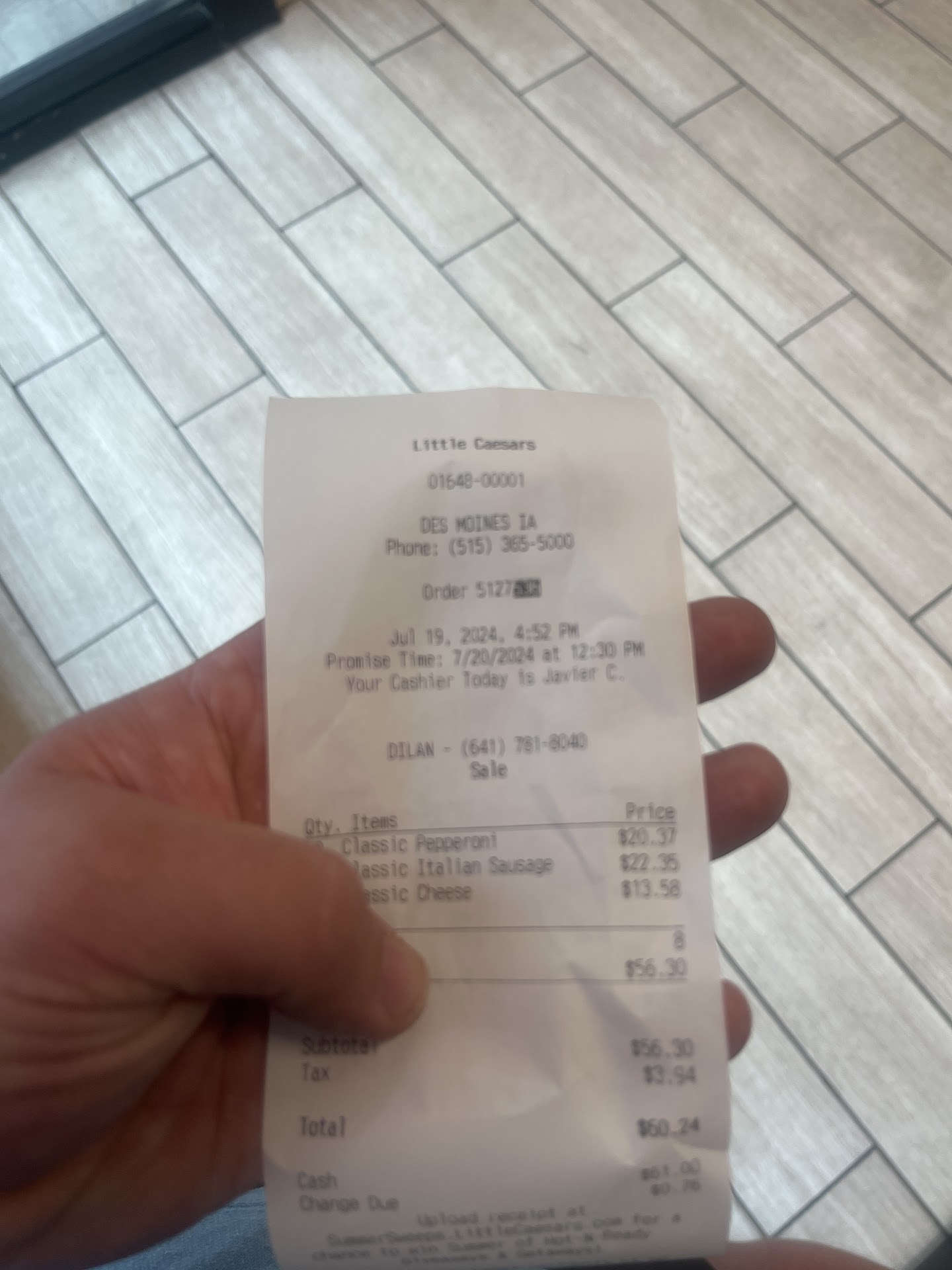 I went in and ordered a carryout, I'm pretty sure I still have the receipt. I got home and it was incorrect. Normally my pizza is made correctly, it's nothing hard (cut into squares). Up to this point, one reason I went there was because they got it right. I called the store after I saw my pizza was incorrect. The girl ghosted me, the boy cashier who could barely speak, much less understand, English got on tne phone then I got Walter. He said bring it back and we'll replace it. I explained I was already home with kids. BASICALLY HE DIDN'T CARE. He tried telling me the cashier didn't hear me. Hmmmm....I said it plenty loud enough and even used hand gestures to show the square. Walter was useless, he didn't care about good customer service, and I'll make sure I keep telling folks about this horrible customer service. I believe I have reviews out there regarding this. Since they don't seem to want any more of my money or retain a customer, I'll very happily spend it elsewhere, as there are several pizza places to choose from that have better customer service. AND I CAN'T...