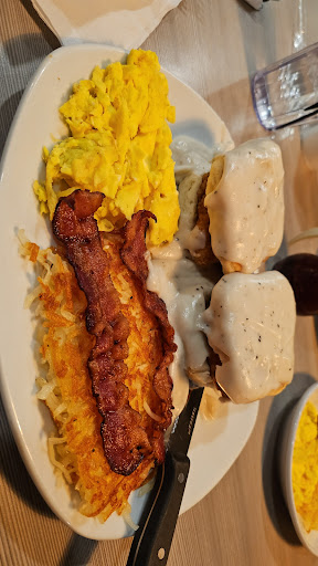 Read moreWhere to begin. I entered the restaurant at 5:10 am, first customer of the day. A man with a large tattoo on his forehead that seated me asked what I'd like to drink. He then informed me they had no coffee. Apparently, only management could operate the machine, and the manager hadn't arrived yet. Strike #1. Pearle, the waitress promptly came to take my order. While waiting for my food, I noticed how filthy the floors were. Strike #2. It didn't look like they had been vacuumed in quite some time. Within a few minutes, my order arrived. At that time, Pearle told me they didn't have any blueberry muffins, so I chose cranberry. Strike #3. The hash browns, sausage links, and bacon were barely warm. Strike #4. At this time, numerous fruit flies descended on my table. Strike #5. After finishing what was edible, I walked up to pay. While waiting, I noticed that the display cases for the bakery goods as well as the counter were filthy. Strike #6. Of course, no one was available to take my money, so I placed a $20 on the counter and left. Strike #7. If I had stayed any longer, I'm sure I would have struck out the side. One positive was that the large clock on the wall displayed the correct time. I'm praying I don't get...