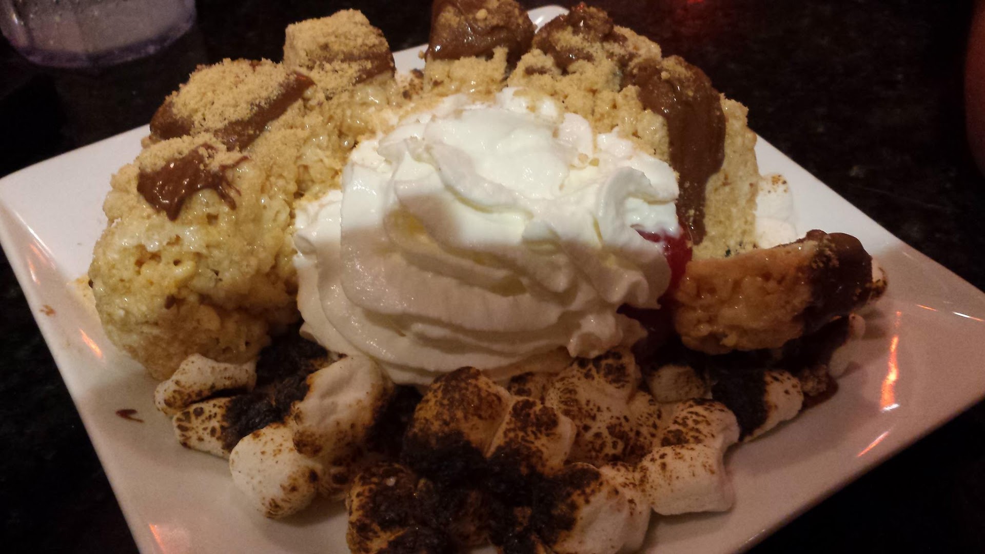 Smores Roll: This "roll" is a rice krispie treat, with whipped cream, toasted marshmallows, graham cracker crumbs, and drizzled with chocolate sauce. It was super yummy. The only complaint I had was that the individual "rolls" were really big, so it was a little hard (and very messy) to eat. I would definitely give this a try as well!
