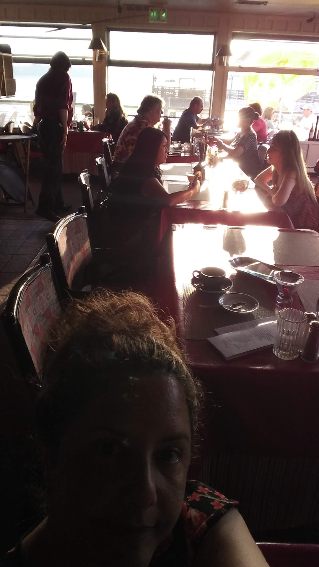 Let's start with the seating. We sat outside in flimsy plastic chairs too close to the table behind us on either side. It wasn't horribly awkward, but you definitely felt that you needed to stay close to your table if you didn't want to sit literally back-to-back with the guests behind you. It's a popular place, so I didn't mind it too much; they have to maximize seating as much as possible to get as many people in so they can make money...I get it. Still...once you check out the menu, you realize the food and view are what you are paying for, not comfort.
