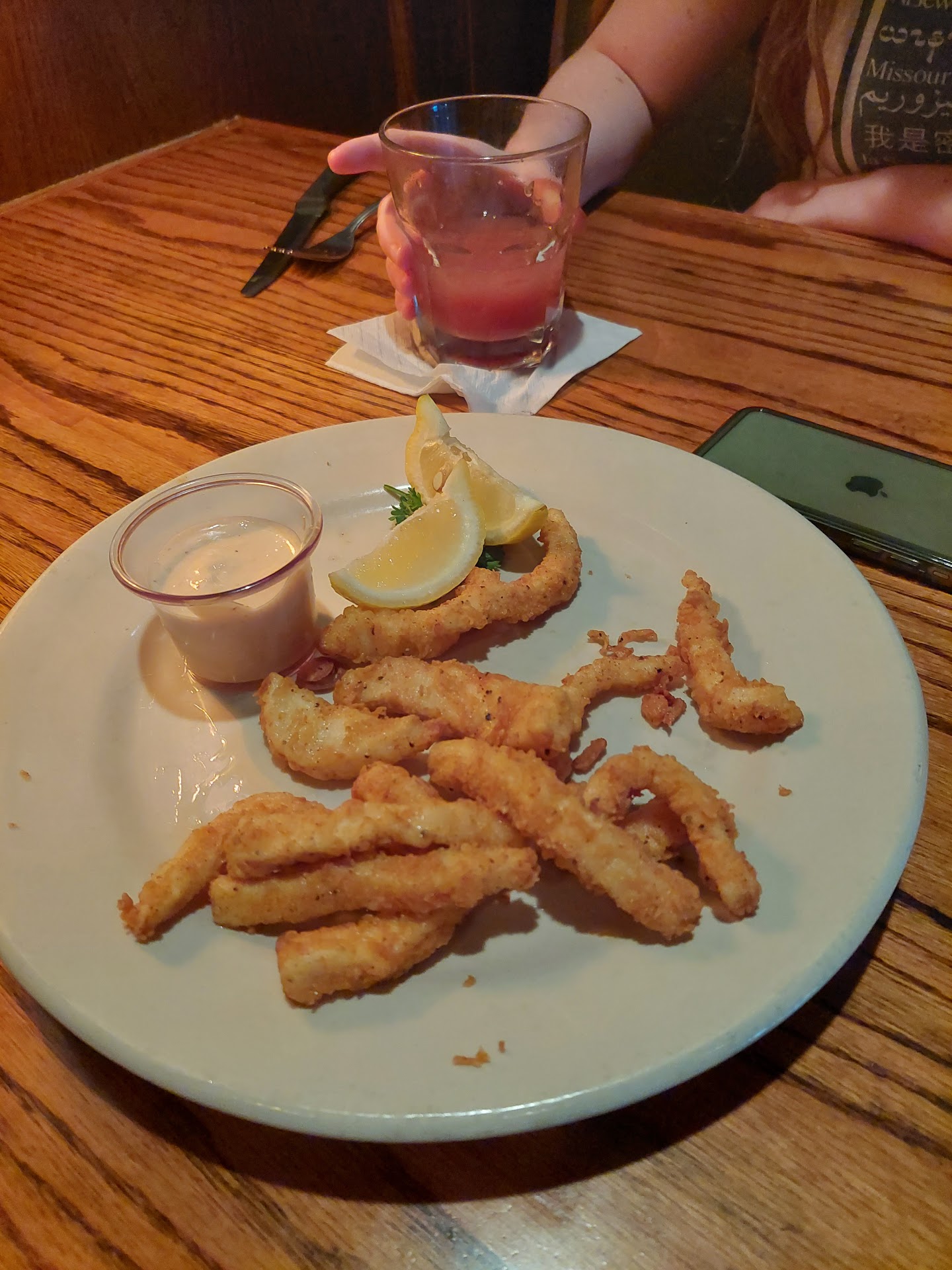 We had the Calamari Strips for an appetizer and they came out piping hot. The dipping sauce was absolutely dynamite. My wife is usually not a fan but she commented that they were really good. Needless to say, they didn't last long. Ohh so good. I had the ribeye and baked potato. Cooked perfectly medium rare. My wife had the Tomato Basil Pasta with shrimp. The shrimp were not shrimps, pun intended. Large shrimp in this dish. She really enjoyed it. My daughter had the blackened salmon with bowtie pasta. The Cajun cream sauce was just fantastic and made that dish. it was lick the plate good!! She loved it.