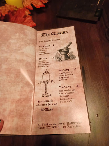 Read moreThere should definitely be more reviews about the service here. I’ve gone a couple times now and the service is awful. Bartenders are honestly rude but not in a fun way lol one is hot so that’s cool. It’s cool to have these weird games & puzzles - but idk if the customer service could turn it up a bit id actually like to play the games. Also there needs to be MUSIC playing. Not haunting ghouls lmao play some dark synth, nu wave or metal & I promise people will stick around longer. Also for an expensive cocktail 60% of them are really difficult to drink. I genuinely love the concept and dig the quirkiness but when it comes down to it - treat your patrons...
