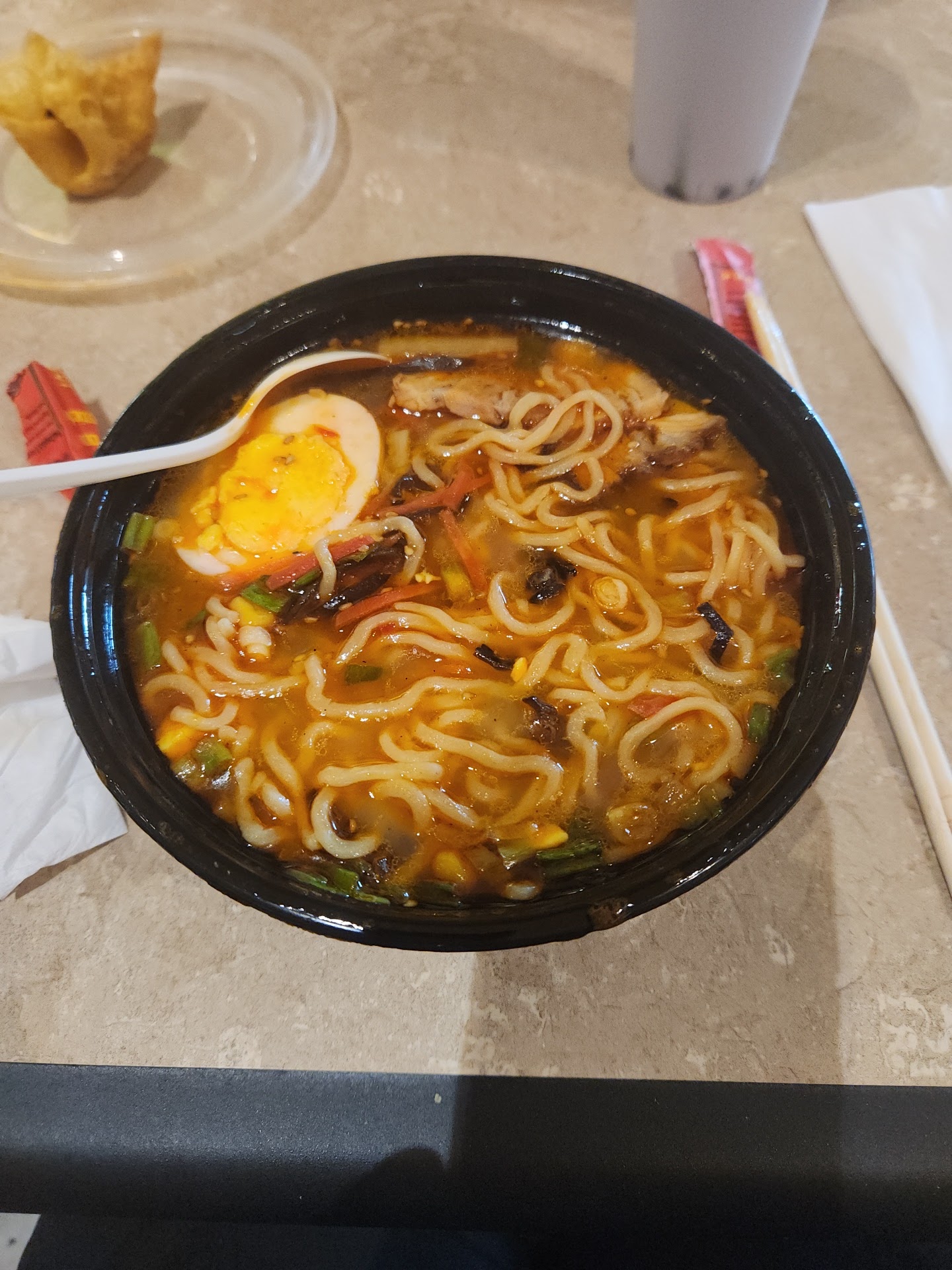 Read moreI visited on Sunday. First, I wanted a small combo. They didn't ask, they just threw together a large. Next, I asked for a large soda, and they gave me what was a 44-oz glass. I sat down to eat after paying $8, and the chicken was so old and hard, the plastic fork couldn't even pierce it. The tines bent. I had ordered bourbon chicken, so I went back up and asked for mandalay chicken, thinking that might be fresher. Nope! Just as bad. The crab rangoon was also old. I think I was eating their Friday food! Not at all worth the money and I certainly won't go back for another dose of...