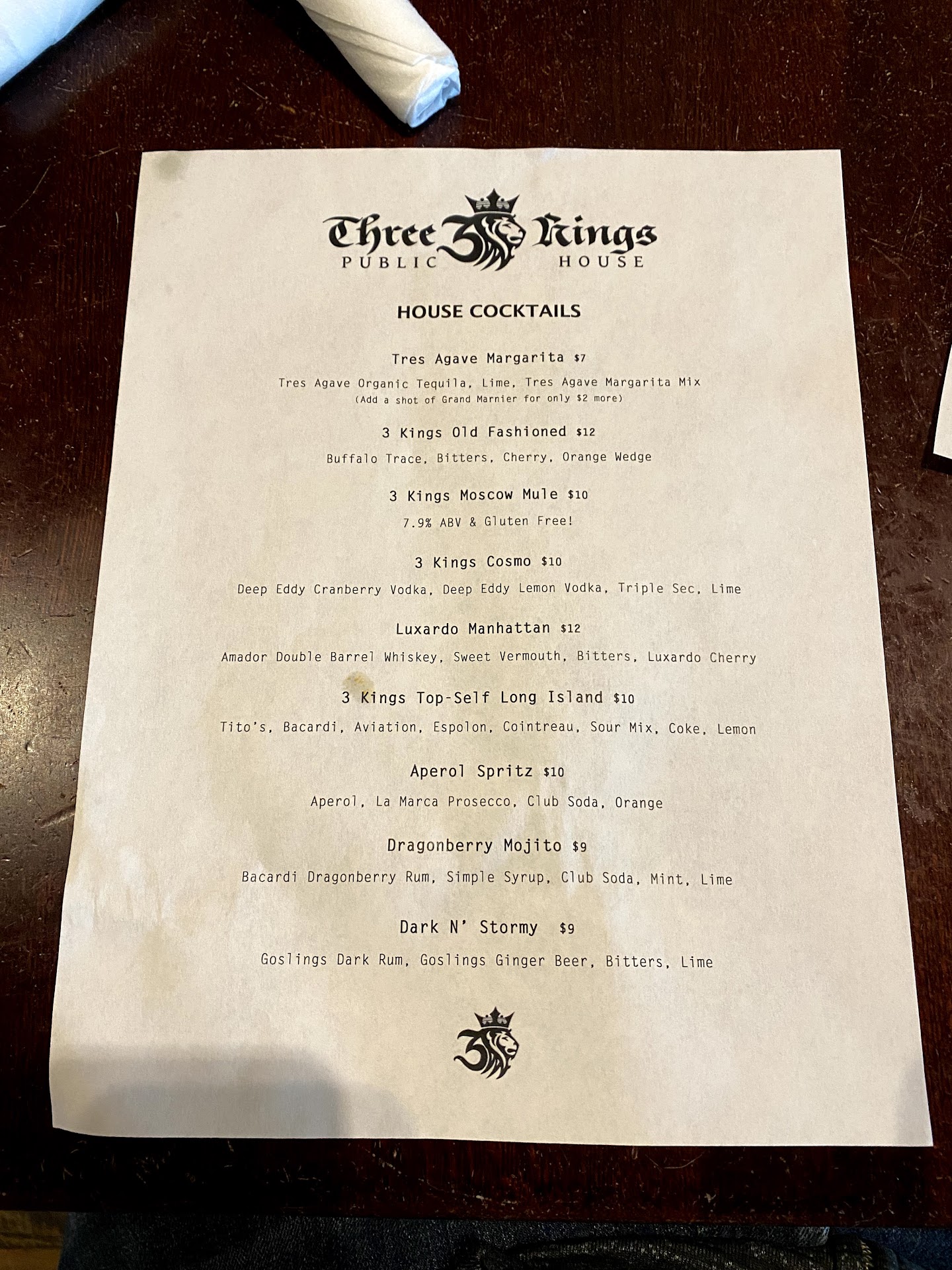 Overall, I can’t recommend Three Kings. Maybe they just had a bad night, but what I had hoped would become my go-to neighborhood pub is now in “I don’t know if I’ll ever go back” territory.