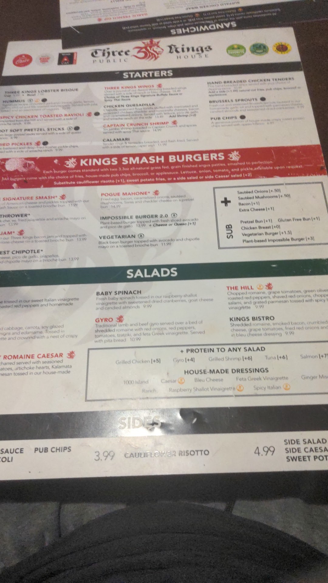 Read moreMy friend and I went to Three Kings Public House today because we heard that the wings were phenomenal. Wow! We were not disappointed. The wings here are amazing. They offer two different flavors: Three Kings Buffalo Sauce or Spicy Thai Sauce. We had both. The first thing you will observe is that these breaded wings are huge. Maybe the biggest chicken wing that I have had in St. Louis. Clearly they are making a decision to serve a very high quality wing. The Buffalo Sauce was good but we were blown away by the Spicy Thai flavor. It was incredible and we loved the Spicy Thai. The service at this restaurant was also a 10 out of a 10. Have you noticed all the restaurants with signs apologizing on the front end that service is going to be bad because of a shortage of people who are willing to work? Three Kings Public House does not have any sort of signs and our server was amazing. Her name was Heather. She was a great ambassador for Three Kings Public House (She has worked here for a while). It was clear that she loves her job, she loves her employer and she is a people person. She was super attentive and engaging our entire visit. We had the opportunity to meet the manager, Jason. Jason was engaging and he even facilitated a hotter version of the Spicy Thai. (whoever was cooking did an amazing job for us). Jason was extremely helpful. This place is a 6 on a...