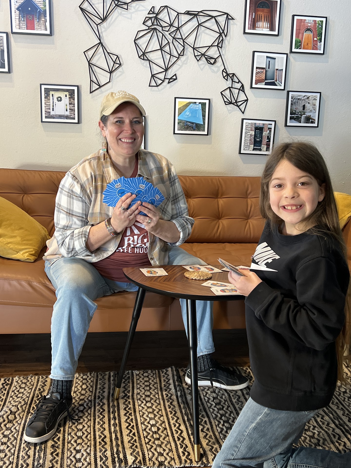 I attached a picture here of Amy with my oldest daughter, enjoying a game of Old Maid while I enjoyed my coffee. Amy, Jason and the rest of the Big Door Coffee House staff treat every child that comes by with so much respect, and treat them as if they were their own. My girls favorite part of the day is getting to visit everyone and enjoy their kids play area and kid friendly drink options.