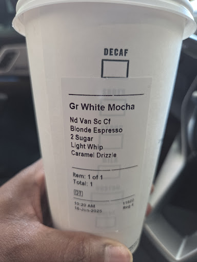 Read moreI have gone to this location many times and overall it’s been disappointing. It use to be that I could never ask for extra caramel drizzle in my macchiato because this location put way too much and it would be so sweet that I couldn’t drink it. Now when I ask for extra drizzle it’s not sweet enough, and I barely like it sweet. Also, why can’t it ever come out like the picture? I’m not talking perfect but come on, foam on top with caramel drizzle on top of the foam. They claim the caramel falls through the foam? Yeah, if you squeeze the bottle super hard and big globs come out, it’s just common sense. Squeeze the bottle lightly and do lots of thin lines on top. Also, I order my drink upside down because I got so tired of the espresso being in my foam and ruining the foam and Carmel at the top, which is my favorite part, and so I was told to order it upside down but it hasn’t changed a thing plus this location consistently does not give me the extra foam I ask for and the little bit of foam that is there has espresso all through it, no caramel. I’ve been getting this drink for probably eight years. I never had problems in Houston but for some reason here in Dallas for the last 2 years it seems to be a big problem, consistently this location. For a drink that cost me almost 9 dollars it’s very disappointing that I hardly ever get...