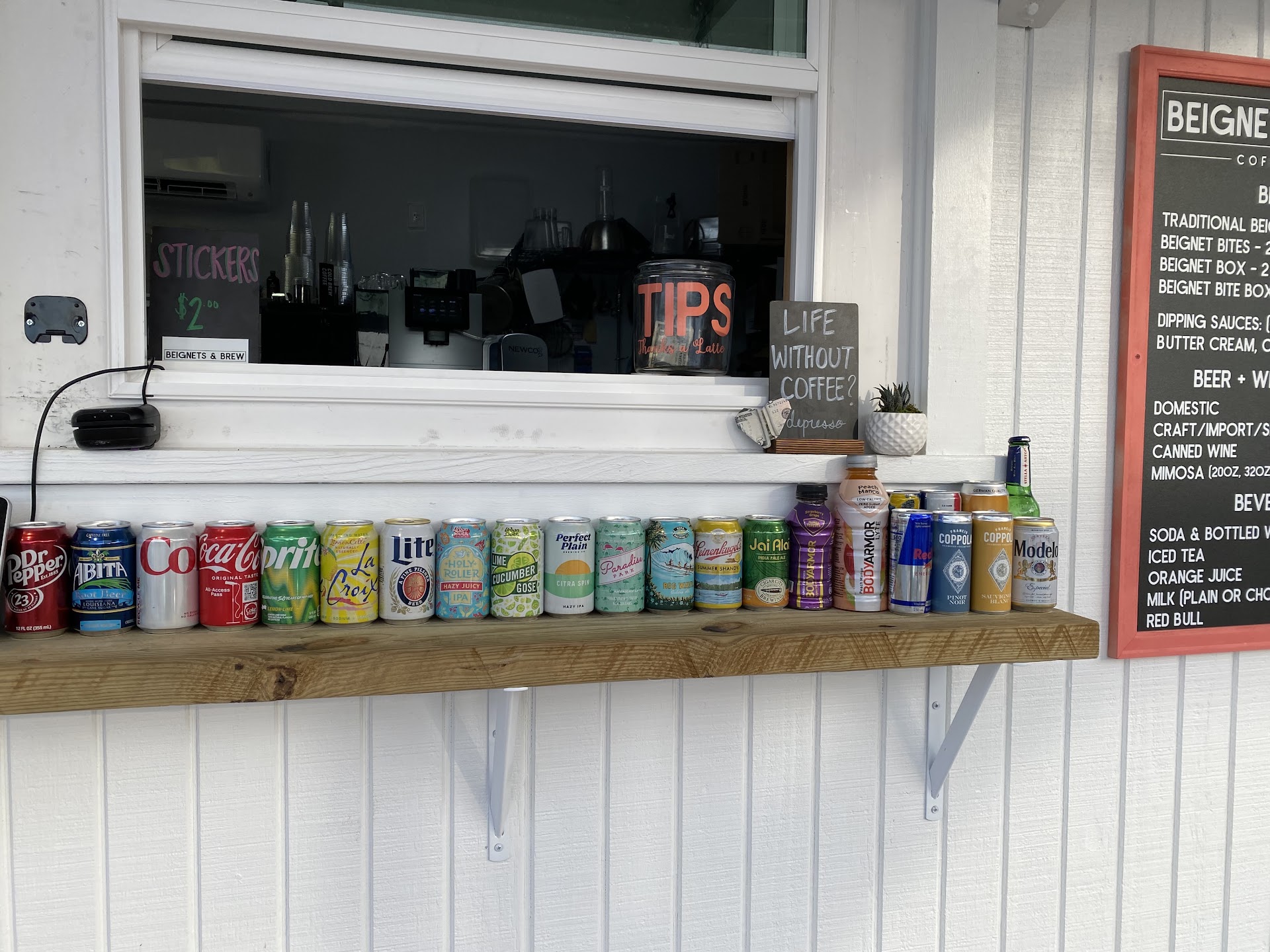 Read moreI hate to leave a two star review because the food and service was great! The problem was that we were looking for a place to have drinks beforehand and didn't realize that Beignets and Brew served drinks! Had we known this, we would've loved to stop in and order a few drinks there while we had our beignets! We looked on the website and nowhere did it even advertise alcohol in any way! It is not on the company site and was not on the Auburn website either! How do you have a franchise that advertises being a mimosa bar on your store front, yet you don't have it listed on your website!?!?! I'm sorry, but probably not the smartest marketing strategy as a franchise owner if you intend on selling alcohol! Loved the beignets, but I'd probably at least advertise what drinks you sell and possibly some pictures if you're going to be a "Mimosa Bar!"...