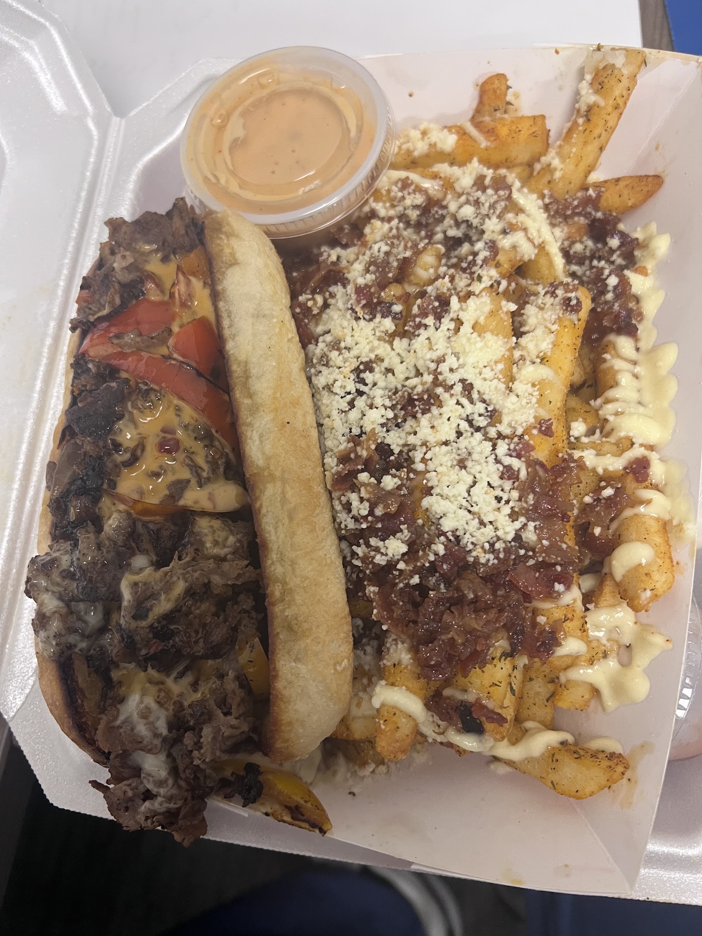 I ordered the Big Back Smash Burger, and wow—absolutely delicious! Perfect seasoning, cooked just right, and topped with a flavorful garlic aioli that really set it apart. The fries on the side were just as good—crispy, hot, and packed with flavor. My friend ordered the Philly Cheesesteak and let me sample it—another 10/10 dish, especially with that same garlic aioli sauce.