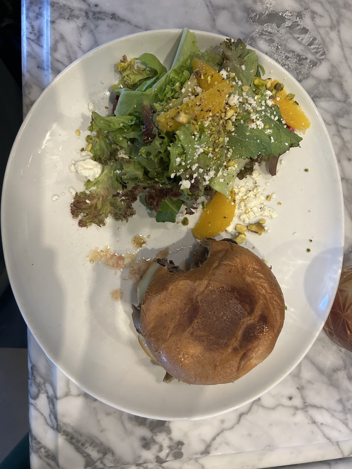Down sides: We asked to sub the salad that comes on the dinner menu burger ($20) with the fries (which come automatically on the lunch burger for $18), and they charged an extra $7 for the substitution.