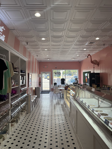 The shoppe itself is adorable, decked out in a charming pink and white theme that gives it a nostalgic, candy-land vibe. There are candies by the pound, an assortment of other desserts, and plenty of fun, whimsical touches that make it a joy just to walk around.