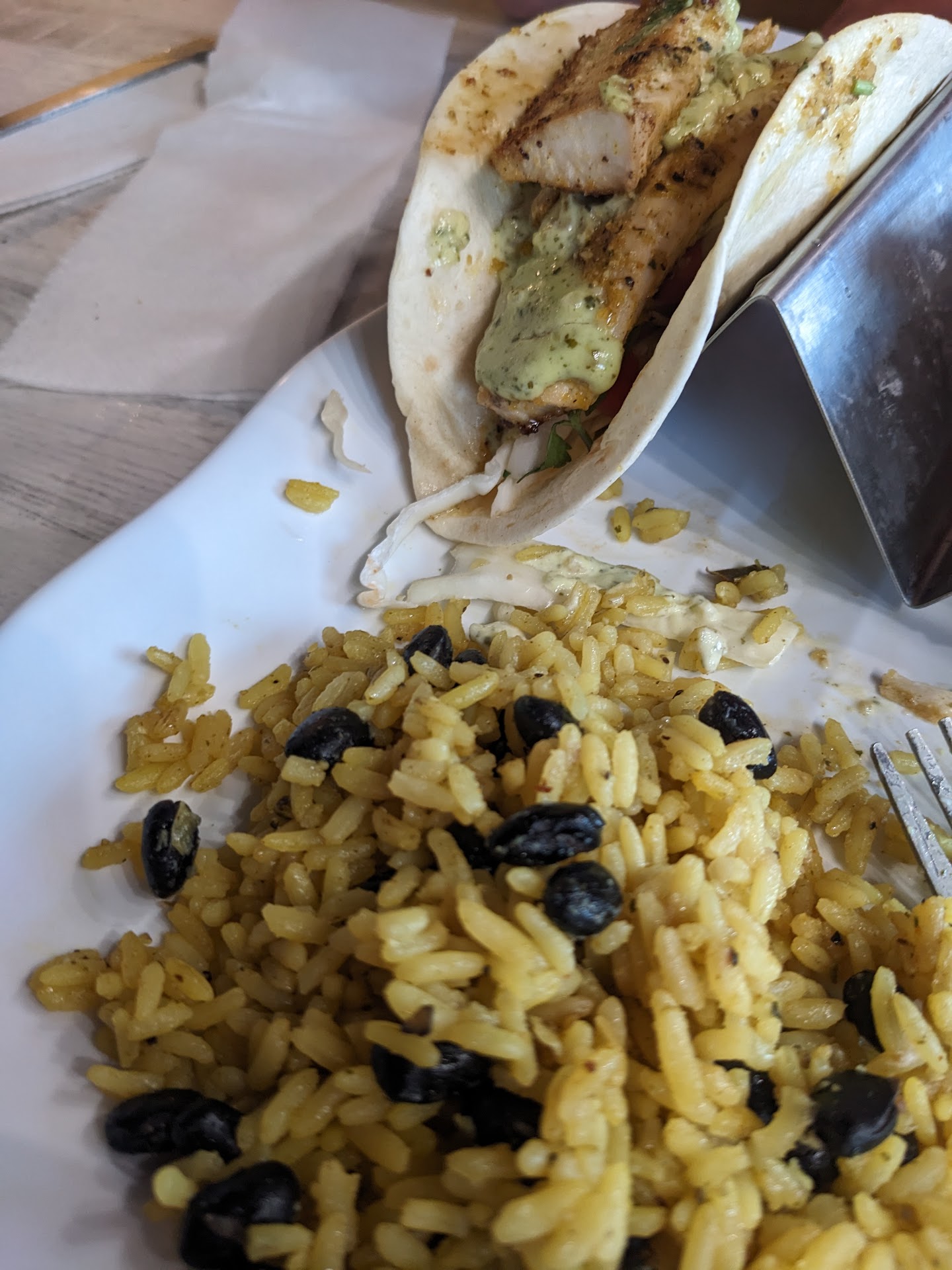 Our server was cordial and took care of our needs; I especially appreciated how offered to get me a sample of the Carolina BBQ wing sauce and a few fries after I inquired. Our food came out quickly and we enjoyed everything: my wife got the fish tacos, my daughter got the kids pizza, and I got the blackened Mahi-Mahi as well as an order of Blackened wings to go. We also ordered some mozzarella sticks as well, which came out with the entrees.
