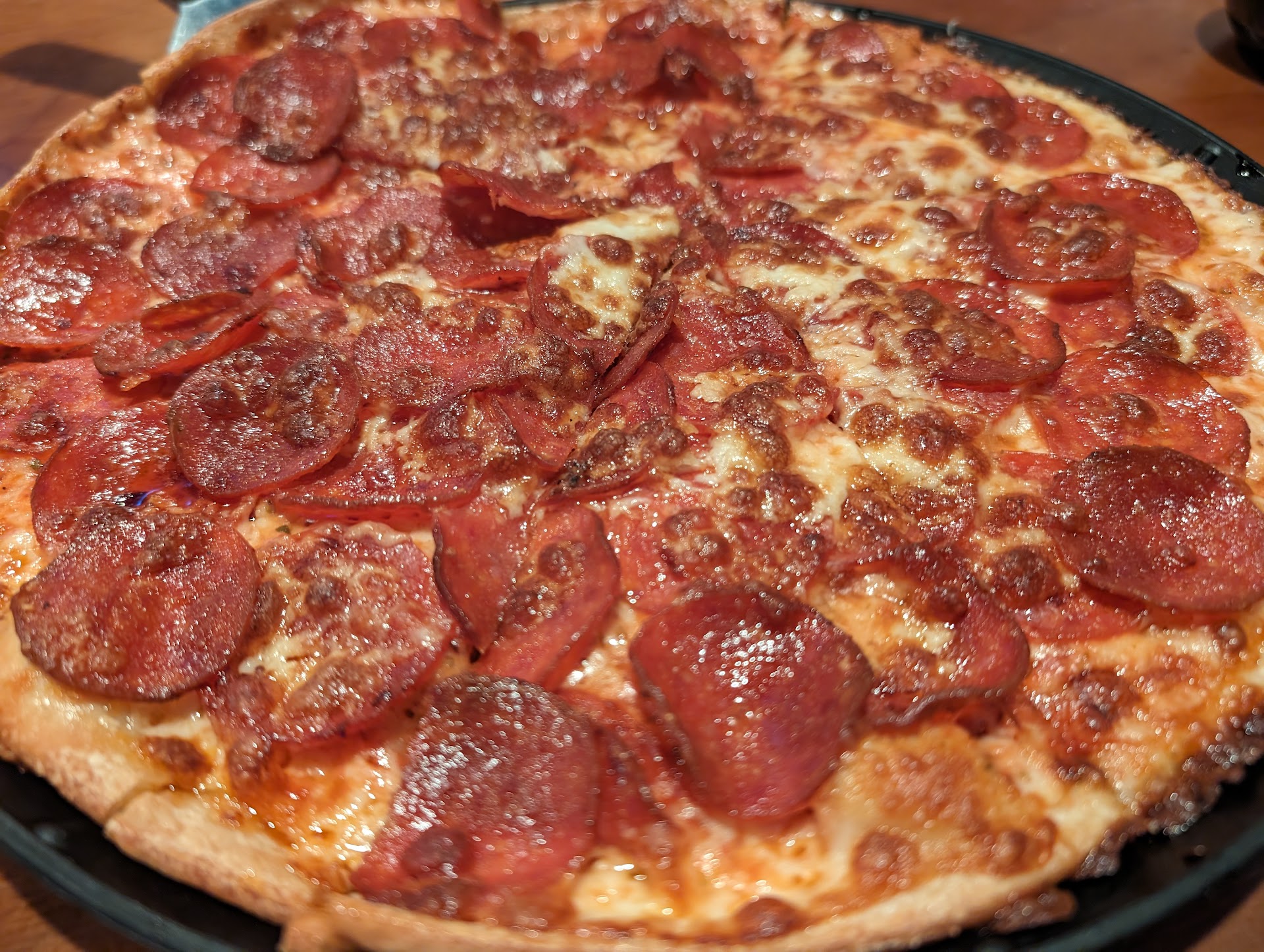 We were only here for a couple days but I've been wanting to try Merlins for myself. Better than I expected. We ordered a medium thin crust pepperoni explosion. It reminded me of a thin crust from Pizza Hut back in the 90's when it was good 😂.