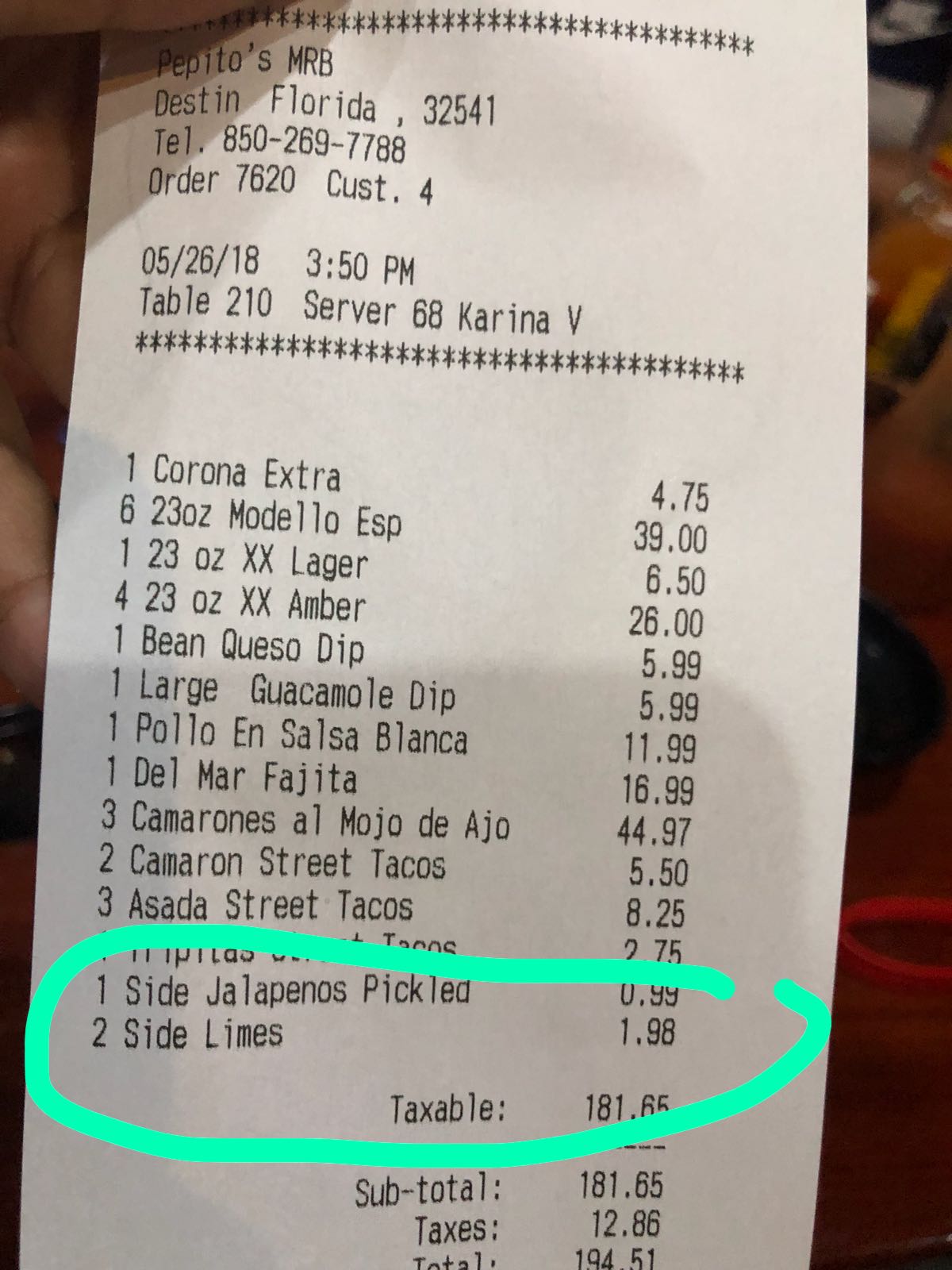 Read moreWe went to Pepitos on Wednesday evening at around 7pm. It was not crowded at all. We were seated right away and brought chips and salsa right away. This was our third time to Pepitos…we came last year twice during our week-long stay in Destin…so you know we liked it!