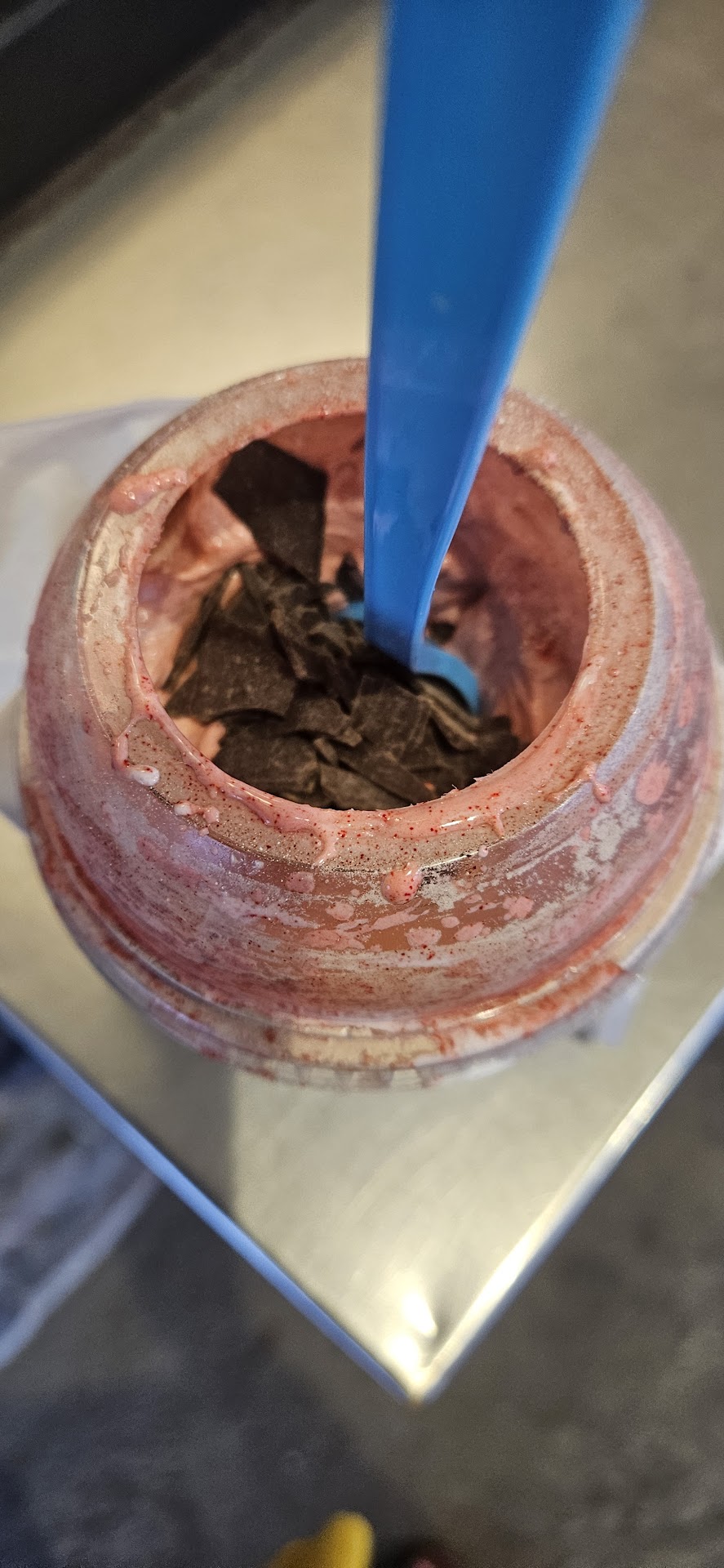 Consistency. A cookie dough concrete in Regular size consistently had too much cookie dough and not enough custard. The same cookie dough in a "Shake's @home" quart size had the cookie dough shredded to little bits and only in the top half of the quart. The bottom half of the quart there was no cookie dough to be found, just plain vanilla custard!