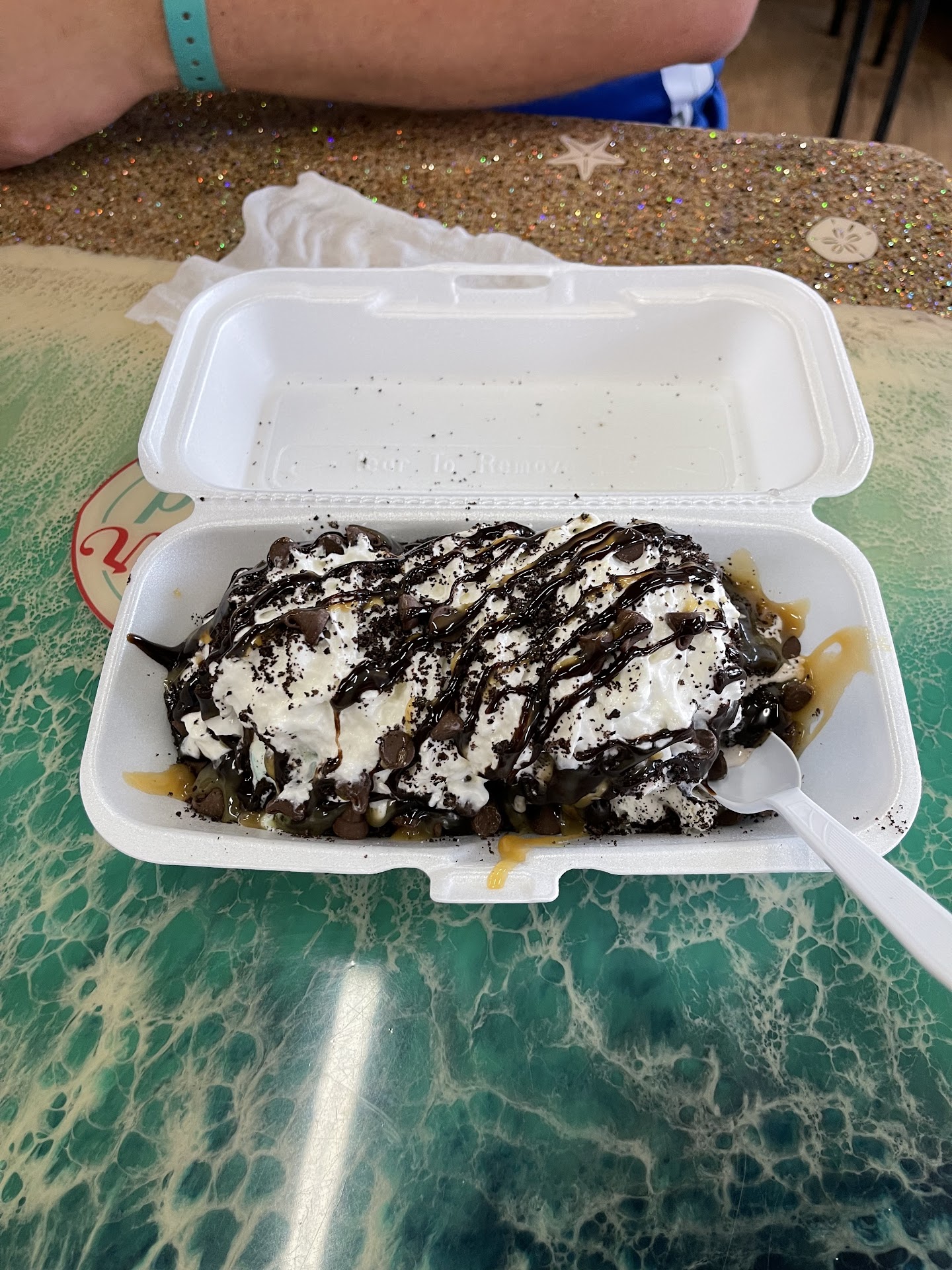 Ā Ā Ā Read moreI was here for Memorial Day weekend with my family and decided to stop for a bite of ice cream. Worst mistake of my life. I have a lot of experience with ice cream and am very open to many different flavors and textures, but this was beyond horrible. I got chocolate choas as I usually opt for a chocolate flavor. It tasted like someone had dumped a bag of sand in it. It was so gritty it out weighed any possible other texture. The taste was just as bad. The chocolate tasted like frozen watered down bittersweet chocolates. The only thing they added to the "chaos" was semisweet chocolate chips. Halfway through I had to throw away my $5 ice cream it was so bad. My mother got the mint moose tracks. It didn't even have any mint in it and had the same gritty texture. The worse part is, is that we both got sick 30 minutes after eating. HORRIBLE AND...