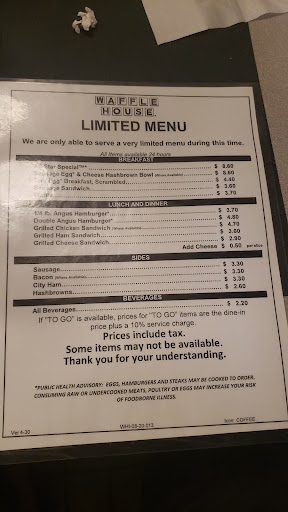 Read moreAWFUL SERVICE, we went to eat to this Waffle House, we just order a burguer and when it was ready one of the server refuse to give it to us because my mom wasn’t wearing her shoes, she was wearing hills the whole night and I think it’s normal to take them off if you got tired, I get up from the table and literally said I will go to the car to pick up her shoes but that rule is stupid and that server start giving us a bad attitude yelling at us and saying “this is America” just because we are Hispanic???? Also if you have money but no shoes on at 2m they will not give you the food what you already order until you put your shoes on??? It was no sight or anything, that server was just stupid and racist. We ask for a Togo box pay the...