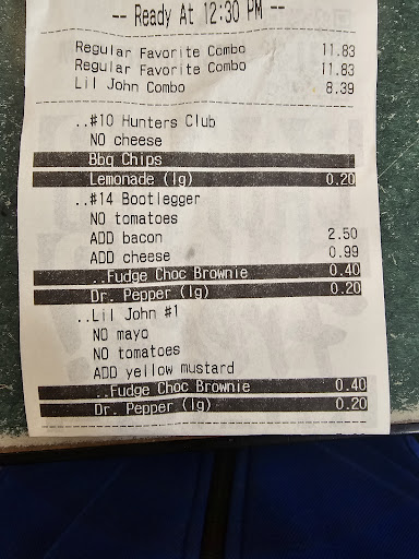 Read moreSat at the WINDOW waiting on our order for 15 MINUTES !! Got to the window at 6:40pm. The young brunette (female) hands us our bag and I tell her she forgot our side pickle. We had ordered 2 sandwiches. 2 drinks. 1 chip. 1 pickle. For another 10 MINUTES we are waiting on that ONE pickle to be handed to me. So while we sat, there were many employees just glancing at the window and not helping. The young girl who "was helping" was mingling with her friends who came in. The store wasn't busy with people . There was another car waiting behind me for a good 10 minutes also. After waiting a whole 10 minutes for a PICKLE I finally got my order after sitting at the window a total of 25 minutes (7:05) with very little customer service. Receipt says her name is Mercedes. DL JJ needs to work on their customer service. I will never go to this...