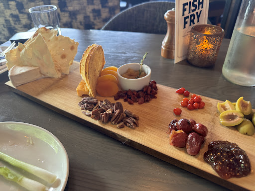 The free starter is a plate of fresh vegetables, but it's not what you think. We had some sliced pickles, radishes, 2 whole green onions, pickled tomato or peppers (unsure and forgot to ask), olives, and some cut carrots. The drinks don't have prices however they were phenomenal. We ordered the lions tail and a Liquor 43 sour, $10 each and worth it. We had the onion rings as an appetizer, and they're HUGE! Couldn't finish it, there were so many, great tasting and right amount for the price. My boyfriend got the ribs, they were good however the BBQ sauce was a bit overpowering, the underlying seasoning is much more delicious. The cole slaw is onion heavy but the sauce is the right amount, if that's your thing then great but if you like a more balanced slaw, maybe do another side. I had the almond crusted walleye, oh boy was that good. It was so crunchy on the outside and the butter sauce they used was the right amount of sweet. I'm not a sweets person but this was delicious. The brocolini was perfectly charred and gave a delightful balance to the sweetness of the walleye. After it all we got a creme brulee which was on the house for our celebration of our 5 year anniversary. The staff is amazing and the atmosphere is cozy and wonderful. I'm greatful for the experience. If you're concerned about prices, definitely look up the menu in advance, but I'll say the portions match the price well...