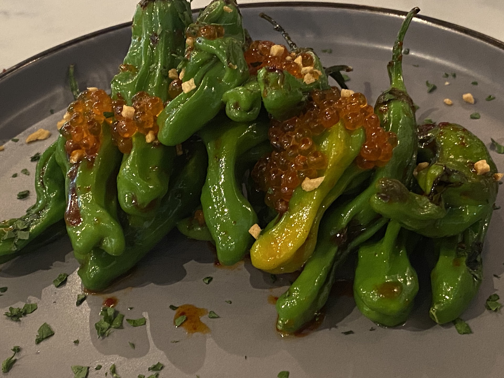 This is a Nuevo Korean spot where the chefs in back have solid technique. There are definitely dishes where I prefer the old school style, but I appreciate the new spin they are putting on it and have to respect the fact that they execute beautifully. For example, the pork belly is cooked to perfection- crisp & tender. The mandarin segments lighten & balance the dish with a natural delicate sweetness- again execution is perfect- I just wish I had the old school sweet & umami option.