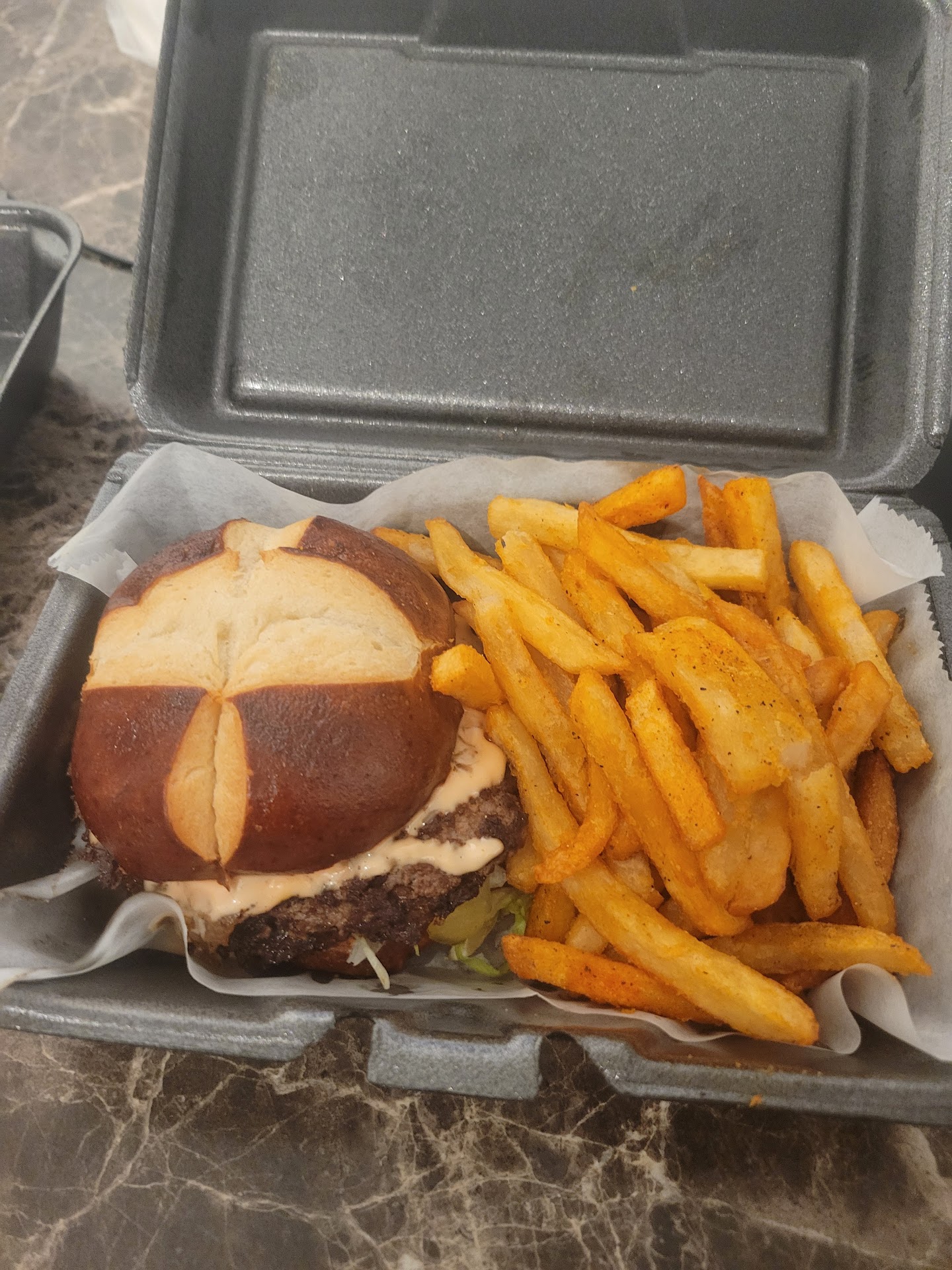 Read moreI have a bunch of saved TikToks for restaurants, so I picked this one since I was in the mood for a burger n fries. I went thru the menu, and my curiosity got the best of me because I chose the Blazin' Burger. I say that because it had 2 patties, bacon, cheese, pickles, blazin' sauce, and CHEESE STICKS! My brain said it'll be a grotesque spectacle and utterly awful, but I was feeling adventurous. It turned out to be spectacular and unique at the same time. I'll definitely be back especially since it was ready on time for my...