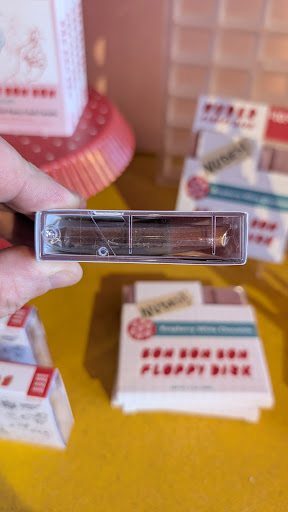 Once inside, though, the vibe shifted. The shop had multiple chocolate selections, so we grabbed a six-pack and went with one of each flavor since it was our first time here. I also loved some of the other quirky products ā chocolates shaped like floppy disks and clever giftable items with witty sayings that almost tempted us into impulse buying.