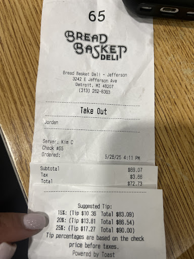 Read moreI have to say that Ronnie mitnick the original owner of the bread basket deli would literally crap his pants if he just tasted the quality of a corned beef sandwich that I just had here today on the 19th of December 2024 in downtown Detroit the bread was not even first rate it was stale it was hard a good rye bread should melt in your mouth with a crusty taste on the ends of the bread. The corned beef was so dry I had to refill my water three times they served it to me lean which I did not ask for corned beef should have fat in it this place should be absolutely disgusted with themselves on the quality that they put out for a corned beef sandwich that cost me $20. I am so disappointed and I promise you I will never visit again. Go to stage deli in West Bloomfield they never disappoint and yes it's expensive but wouldn't you rather have a filet mignon in your mouth then nasty deli lunch meat from a Kroger that's exactly what they served today It was absolutely disgraceful. Ronnie mitnick the original owner would shut this place down and redo everything before he would dare have the name of breadbasket with one of these sandwiches coming out of here. Shame on you...