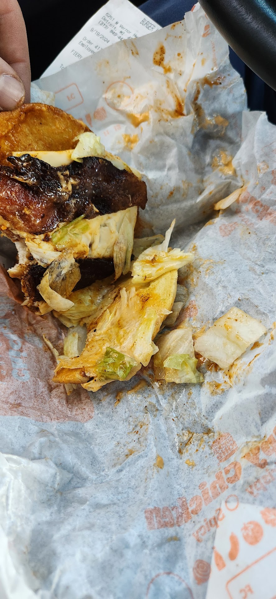 I know yall are lying... right? Decided to try their new fiery menu.. $12 for this thing and it isn't even edible! Took two bites just in case the first bad one was a fluke, took my horror photo and tossed it. I don't think I've had a worse presented fast food item in my life lol. Couldn't even return and complain, my lunch break was over with because it took 10 minutes in the drive through to even get it.. prices are through the roof and they need to take pride in what they make because people are paying a premium for...
