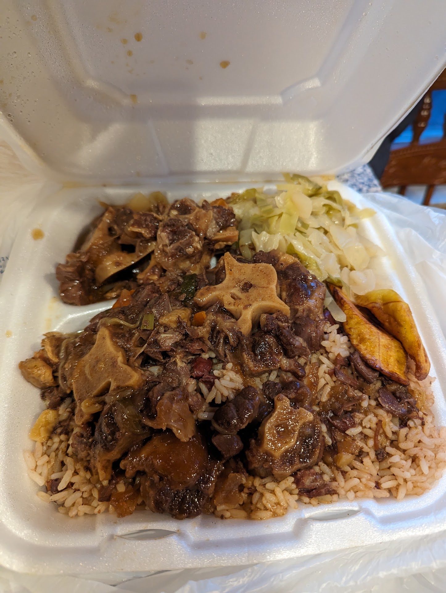 Cabbage was horrible---watered down and soggy. Oxtails had no carrots nor any other veggie nor herbs (quite bland). My beans and rice were mushy... possibly converted rice. After spending $28, yeah right... people work too hard for their earnings! Y'all ought to be ashamed to push those dinners through. Recipe has definitely changed over the years for the worst. 2 decent-sized flat pieces of oxtails and a few tiny oxtails pieces, 2 jerk thighs and the rest. Plantains were so tiny!