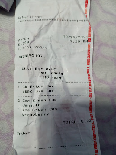 Read moreThis Was the worst experience and a mansger was on shift. I ordered a american cheeseburger with mayo and ketchup only and a 2 dollar box.I know simple right? Nope! The chicken box was old and the burger didn't have mayo.So I came back and asked for fresh food the manager an African amerocan man with glasses older reassured me my order would be fixed. I was given my food and drove away so as I opened my food it was grease on my leg,on the box and the food was covered in grease it was wet I was furious! I wemt back a THIRD TIME BUT AT THIS POINT I JUST DIDN'T WANT ANYTHING! ALTHOUGH IT WAS $3 THE SERVICE ,WORKERS,DOWN TO THE MANAGER IS PATHETIC AND INCOMPETENT. THERE is no reason I should have made 3 trips for a $3 purchase. I WILL...