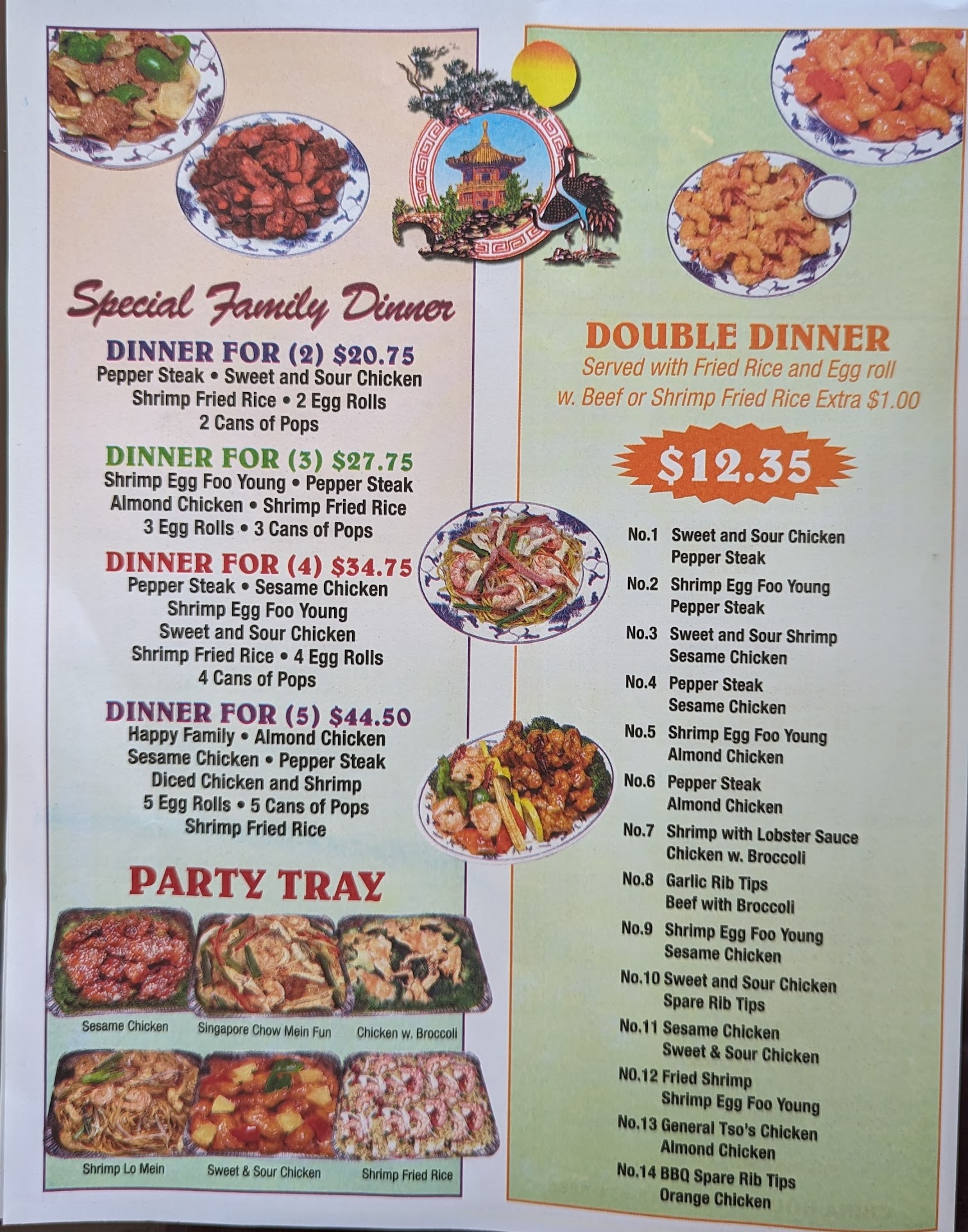 ย ย ย Read moreI had a great experience a coupke of years ago here in terms of the food quality and taste. Thinking it would be an equal experience, if not better, I ordered the same thing, Sesame Chicken with lite sauce and chicken fried rice. The chicken didn't taste like it was 100% white meat as advertised. Merely it was a blend of dark meat as well. I asked for light sauce because I don't like my food soggy. Not only was the sauce on lite, but it was barely enough to cover my chicken. The chicken fried rice had white meat chunks, onions, and bean sprouts in yellow rice. The taste was just ok. Had it been 2am, probably it would have tasted good. Like all Chinese carryout, my order took 10mns to prepare. Overall, my order was just ok, but nothing compared to my experience a couple of years ago. I will only go here if it was the only Chinese carryout open...