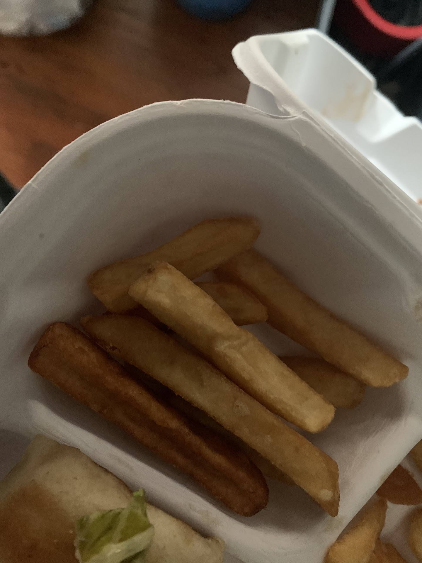 Also got home one of the burgers we ordered has All the stuff we dident want on one, sadly we had to throw it away because someone is a picky eater in my house wjo wont even eat anything stuff touches... (seen in picture )