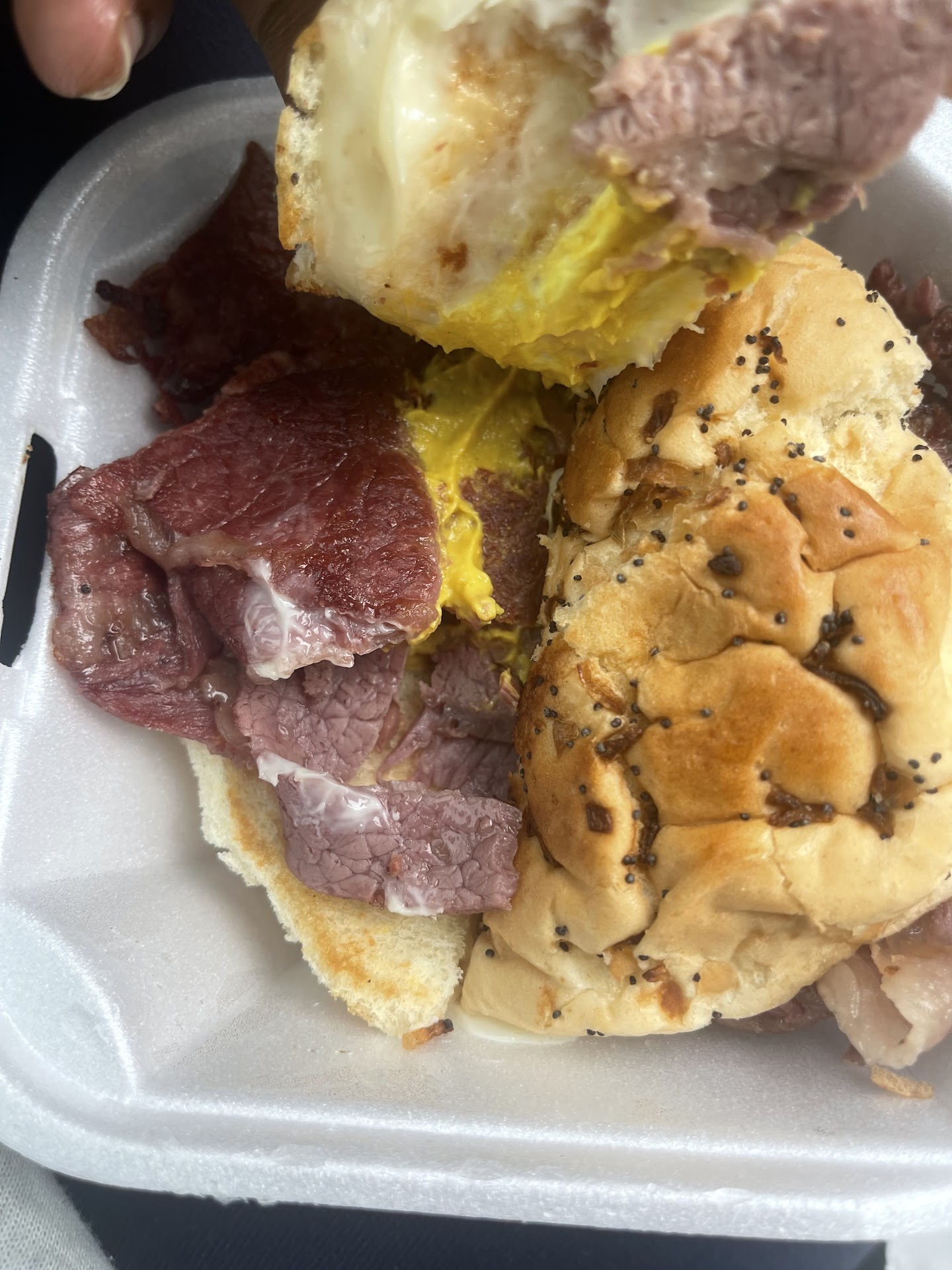 The woman taking our order was very friendly. I don't have any complaints in that area. I ordered a Gyro, my husband asked for turkey bacon on his burger and after 15 mins of waiting (the place was not packed) we were told that they were out of Turkey Bacon. (The excuse for the wait and mess ups was due to "The cooks that were working night were the weekend frying guys so they aren't really sure of what they are doing") So... my husband ordered a corned beef sandwich deluxe both of us had drinks as well. After waiting for 45 mins we got our food finally. I checked the bag there were no fries with my husband's meal and my Gyro looked as if they emptied half a bottle of cucumber sauce and said "oops, O well." The sauce was literally to much and falling out of the box. My husband's cherry Pepsi tasted like regular Pepsi and when he let the staff know that the cherry pepsi didn't taste right, they assured him it was Cherry Pepsi and nothing was wrong with it. He said ok and just dropped the subject because we have already had enough of the millions of excuses they were given. We also ordered cake. Hence me giving more than one star. Although the carrot cake looked as if it had been there for week's, the Caramel cake and Chocolate cake were actually really good (I ate half my Caramel cake while waiting on my Gyro).