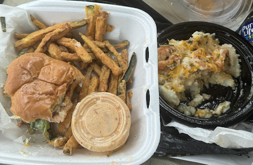 Read moreThis food was so delicious, I went here today and ordered the salmon burger and some zucchini fries and a order of shrimp and grits plus cheese, it was my first time ordering here and everything was very delicious, hot and fresh , I ate then realized I needed to take a picture 😂 it was worth the drive, I...