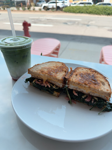 The Strawberry Matcha had actual chunks of strawberries in it, and the iced latte had a bold flavor that wasnât too milky. We got the breakfast burrito and the spicy chicken sandwich. The burrito was so unique and flavorful, unlike any breakfast burrito Iâve had before. Spicy chicken sandwich is to die for. Not too spicy...