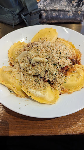 Other than comping us on the bad food, the service was horrible. We waited 10 minutes at least between each visit. We got no drink refills despite being there for over an hour and a half. They even asked us if we wanted extra pita bread and then charged us without making that cost clear. They seemed understaffed and you seated yourself so the whole thing felt really inefficient. When I told the server that the ravioli was horrible he literally said to me "you're not telling me anything I don't know." Which seemed super weird. Wish we could have gotten that tip before we ordered. They should probably take that item off the menu if this is such a well known issue.