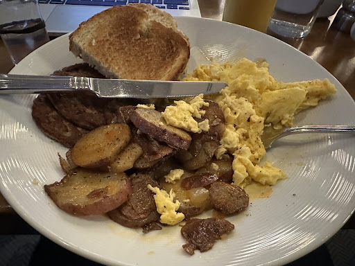 The breakfast was MUCH better but we also had a voucher and the breakfast was continental So we didn't have to wait. They had a hard time keeping everything restocked especially the eggs, but it at least tasted good and the...