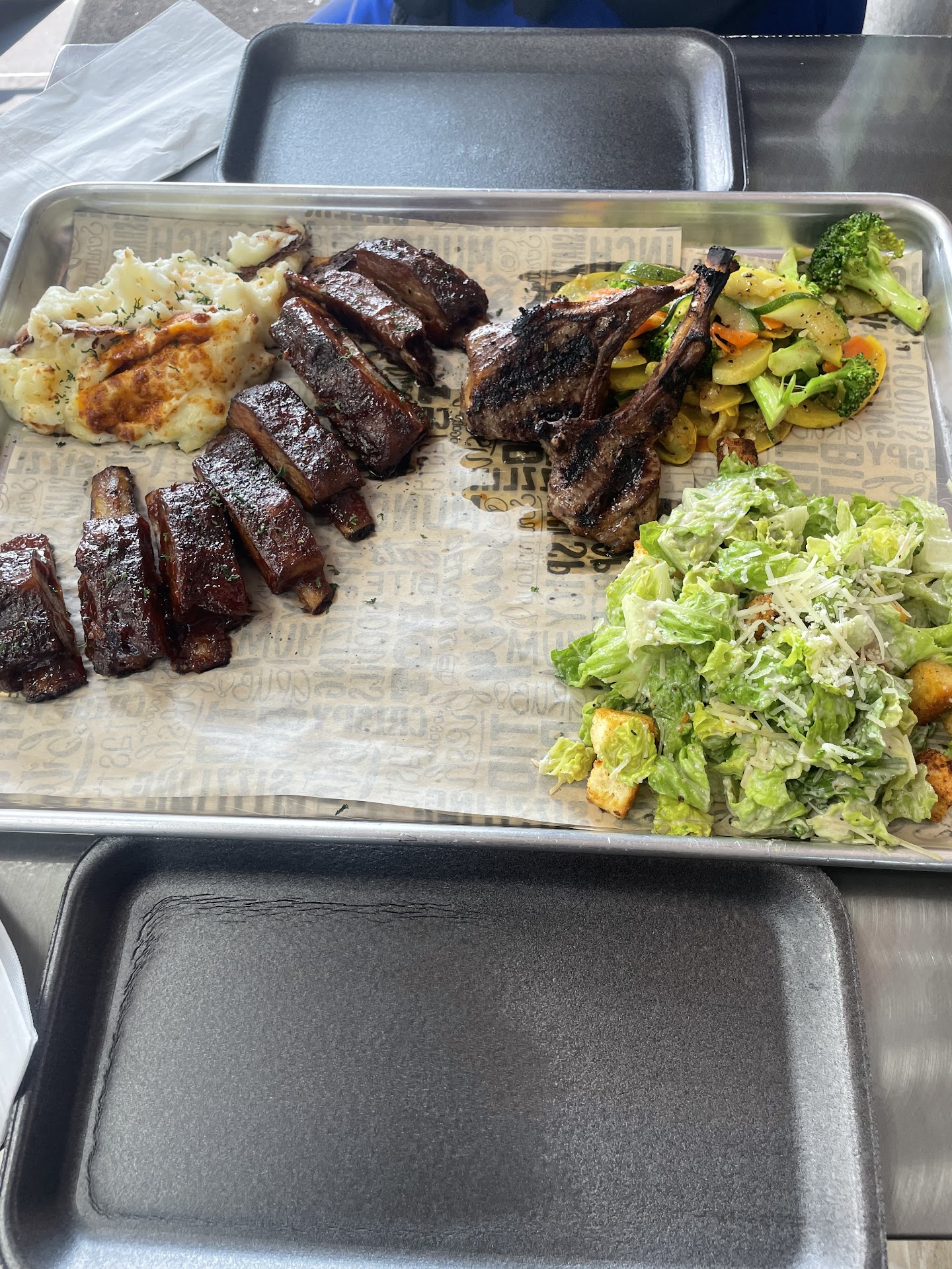 Read moreThe service was great. They do have a public restroom. Which was also clean and I'm now switching to the hand soap they use which is Arm & Hammer they had two options as well. I used the tropical Mango. But on to the food I ordered the full rack of lamb ribs with macaroni, the salmon over rice with veggies, two philly steak egg rolls, and one corned beef egg roll. Now nothing tasted bad but more so everything was mediocre as far as taste wise. This wasn't a bad experience for me because the textures were above average. The lamb ribs were fall off the the bone, fat melts in your mouth but for me it wasn't seasoned enough and the barbecue flavor wasn't strong enough. The salmon was a bit dry and also wasn't very flavorful, the rice was great texture wise but it also wasn't flavored, the veggies we're fresh. Onto the egg rolls the corned beef one was dry and but still crunchy and crispy. I didn't enjoy eating it but was more so chewing to get rid of it. Now the Philly steak one was very good it was moist and cheesy it only had the flavor of the Philly steak not any specifically seasons but it was also good. My husband said he would have gave the restaurant a three out of 10. But I have been Inspired to learn how to cook lamb ribs cuz I do enjoy the taste of the lamb ribs unfortunately it wasn't seasoned or richly flavored like I'm used to for someone that's not used to strong seasonings this would have been like a 8 out of 10 experience. Nothing's wrong with this restaurants but the cost for the enjoyment that I got out of it wasn't enough for me. I paid $62 nearly $63 for all that I mentioned and only really enjoyed the texture and not the flavor. It was even lacking in the flavoring of salt and pepper. I don't think I'll be eating here again. I had to go out of my way to get this and the things that I wanted from there I have tried and wouldn't buy them again. Also from what I noticed I don't think it's a sit down restaurant. I think I noticed one seating area while I was walking to...