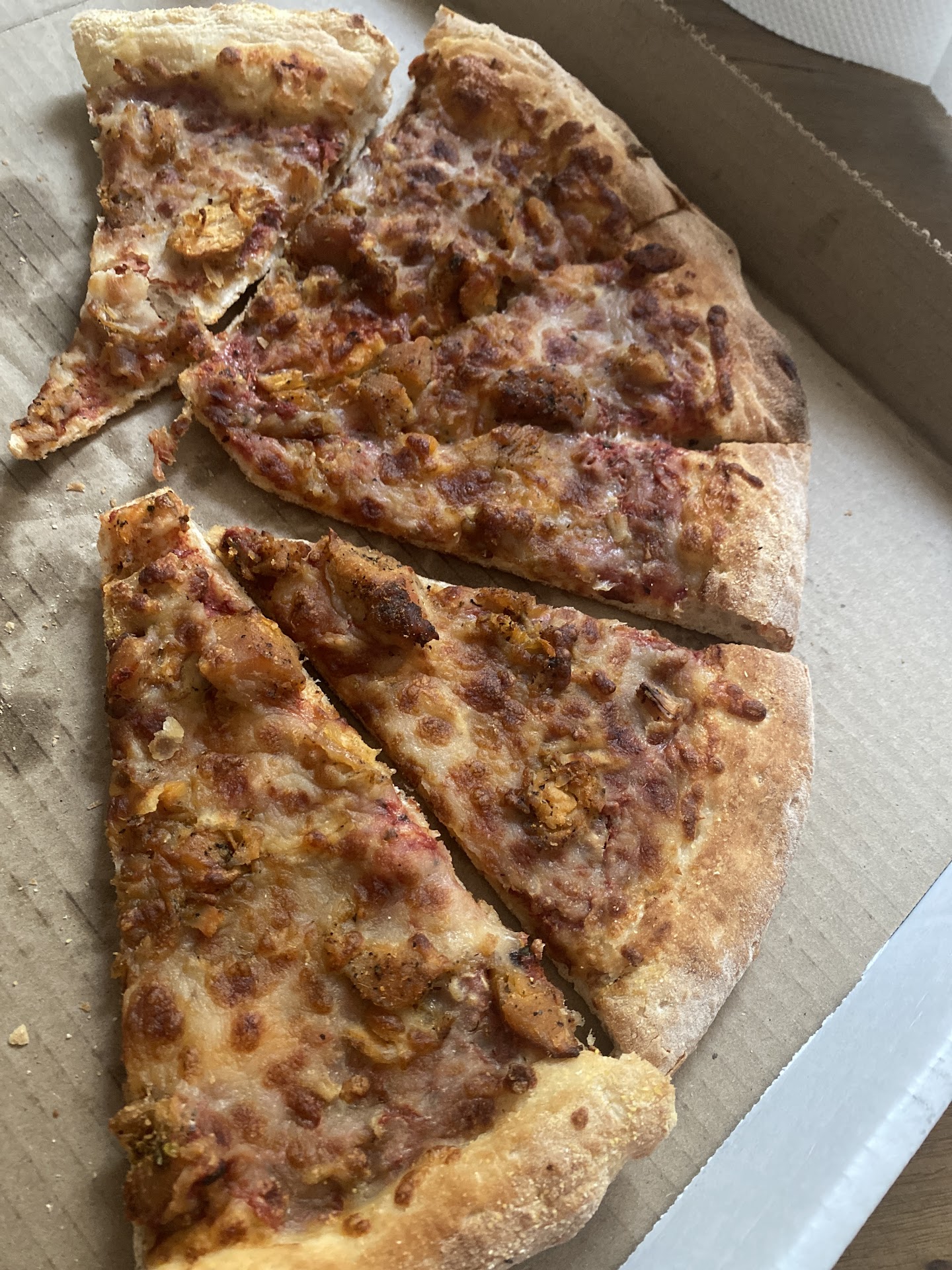 I would say one star for great pizza, sometimes burnt but WHAT IS REALLY BADis the fact that they have , bugs... Yes recently when I went to pick up some pizza I saw TWO cockroaches crawl near some pizzas in the kitchen and the guy at the counter saw too and when I made eye contact afterwards he shrugged it off and when I brought the pizza back to eat some cheese pizza my friend pointed out that there was a filthy roach cooked into her pizza! PLEASE GET RID OF YOUR INSECTS SO I CAN RETURN. It's. Disgusting. Just. No.