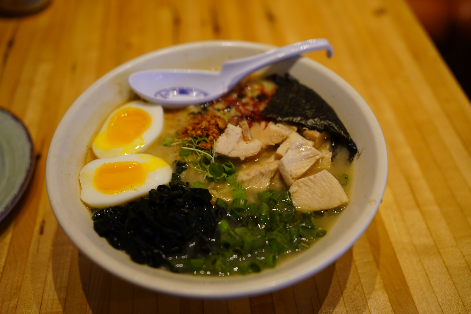 Firstly I was very impressed by their improvisation of Japanese noodle culture, and how well the chef understands of umami taste. However I really should point out that the broth is using too much of dashi (possibly dried anchovy broth or seaweed broth or both) for their ramen noodle soup. Dashi components are amazing sources of umami yet when it's too much it's gonna overlap other flavours and eventually ruin the whole balance. For instance, I ordered tori paitan (literally means chicken broth white soup) but the whole soup was very overwhelmed by the smell and flavor from dashi. Even another noodle ordered by my wife had same overwhelming dashi taste. I am not American (but a legal alien) and I don't know what kind of taste an average American person would expect from Japanese noodle restaurants, but I can tell the noodles I had are not even close to what they are supposed to be, and that could've been the reason why this place wasn't populated with east Asian people. Tori paitan should taste more like tori paitan.