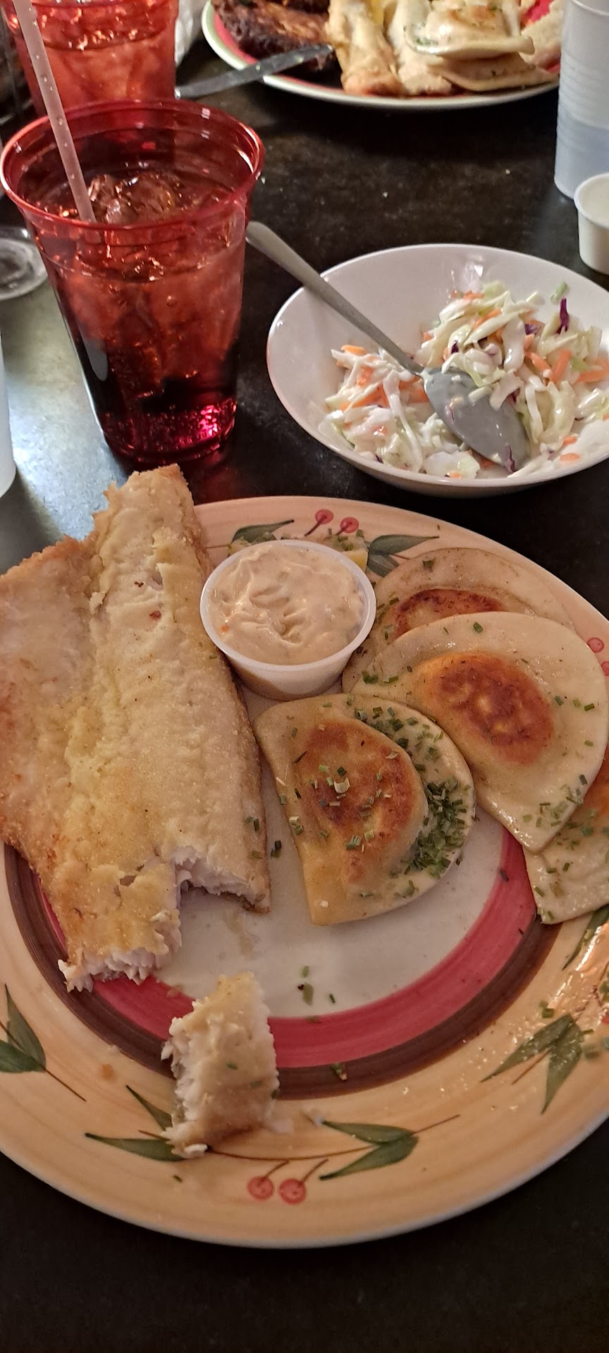 Though we arrived after the traditional lunch time, the place was emptying out & we waited a LONG time for our food. The ambience , the complimentary cole slaw & pickle plates kept us occupied.