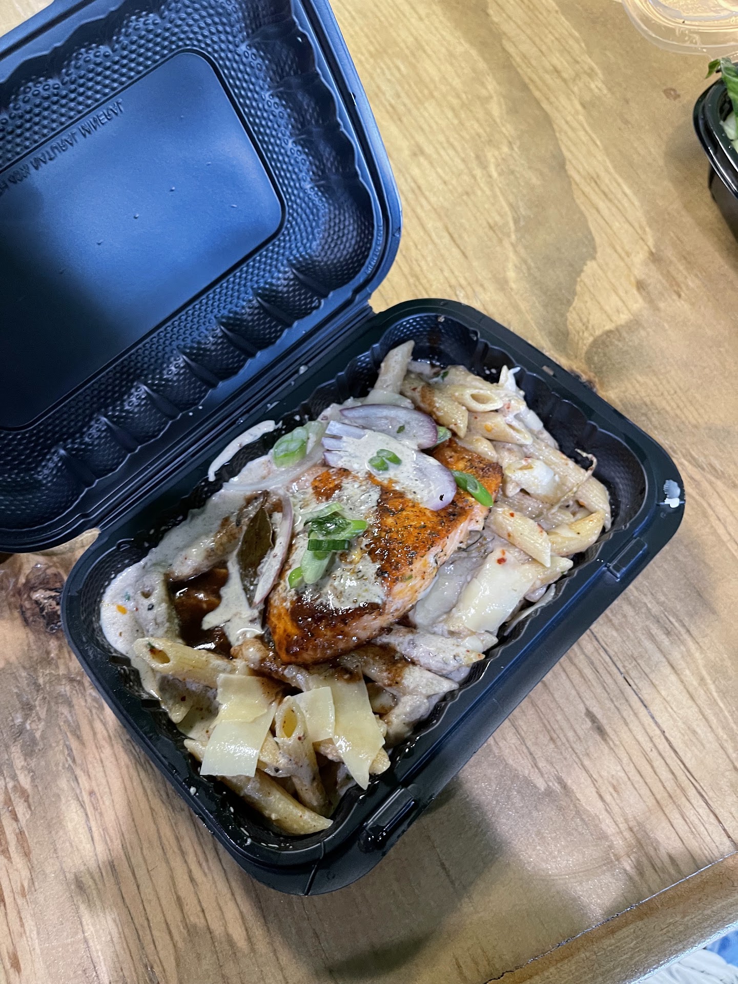 The wings were spicy and done sticky like I likey! I had the Jammin Salmon with cabbage and rice and peas as well as some coco bread. All of this was JAMMMMMMMMIN! I prefer to mix up my salmon, cabbage and rice and peas which definitely elevated the eating experience beyond just sampling on the fork between each item. The cabbage juice added a lil som’n special to the rice and peas and salmon juice. The coco bread was fluffy, lightly buttered and near heavenly.