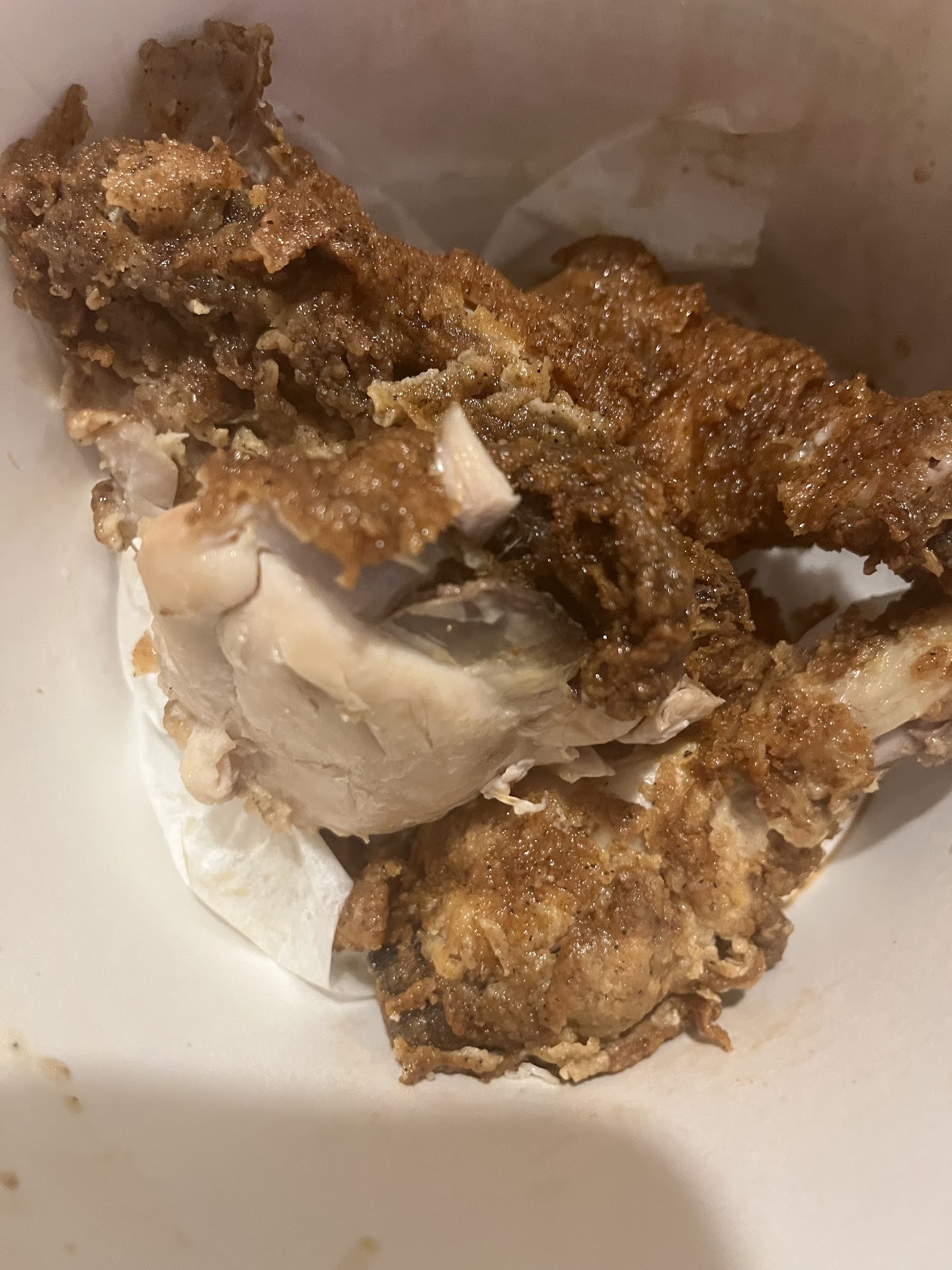 This last visit was very disappointing. They apparently ran out of original chicken and told me if I wanted to wait it will be 15mins. I said that's fine. I ordered, paid, was told to pull around. Which I did and after 30mins of waiting I called the store to which no one answered and the front door was locked in the 8pm hour so I couldn't go in and inquire about my order. Finally the young man brought me my order, no napkins or condiments which we had already went over (hot sauce and honey). There wasn't any I had to knock on the window to get the items as he laughed. I got my order home to only see a glob of chicken swimming in grease that pool to the bottom of the bucket. All the skin and ingredients slid off the chicken when you tried to pick it up. The manager was packing the food and if she thinks that was ok to serve she should be shamed. If you don't want to cook and provide quality food and service at 8pm just as you would when you open your doors at 11am or so then maybe this is not the job for you. There are still people out here that work hard for their money and want a break from cooking, this will not be my restaurant of choice with this type...